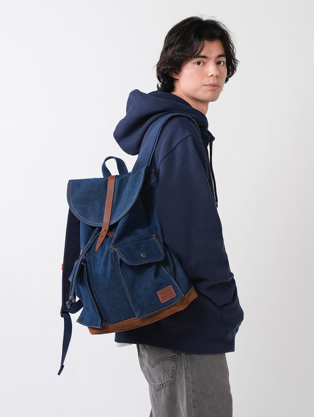 Levi’sらしく耐久性に優れたデニム生地を使用したリュックサック。25Lの容量で広々とした内部、ラップトップスリーブ、外側に配されたポケットが特徴です。ツーホース・マークのレザーパッチも配し、機能性とデザイン性を兼ね備えたアイテムです。