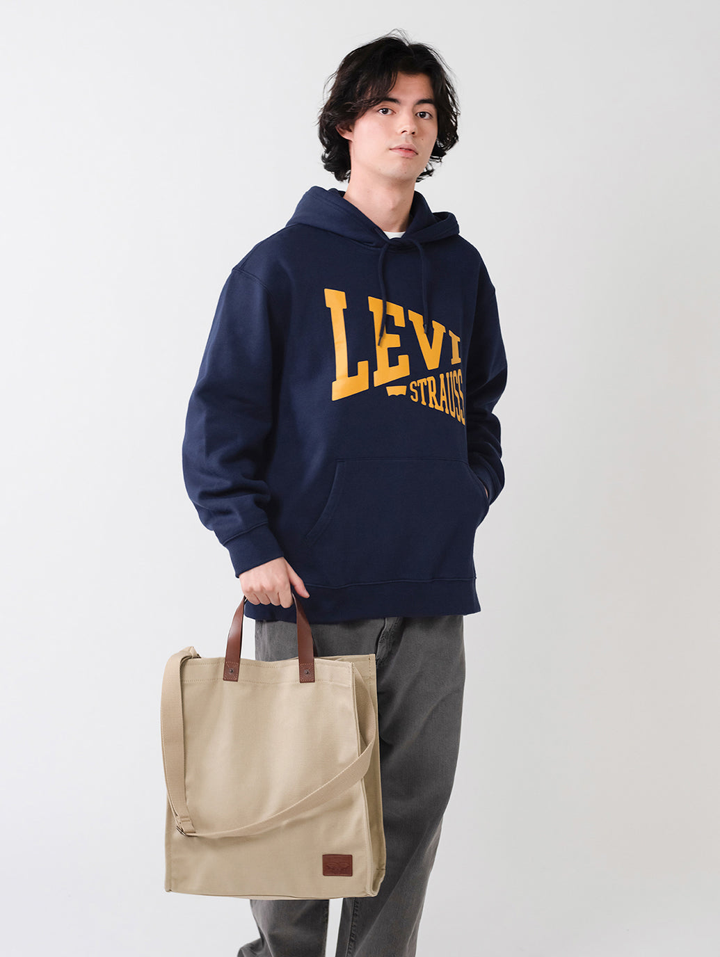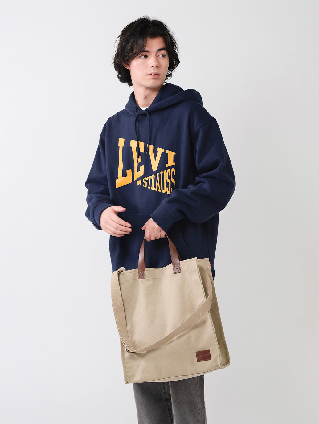 Levi’sらしく耐久性に優れたコットンキャンバスを使用したトートバッグ。調整可能なストラップ、内側にスリップポケットを配したデザイン特徴です。ツーホース・マークのレザーパッチも配し、機能性とデザイン性を兼ね備えたアイテムです。