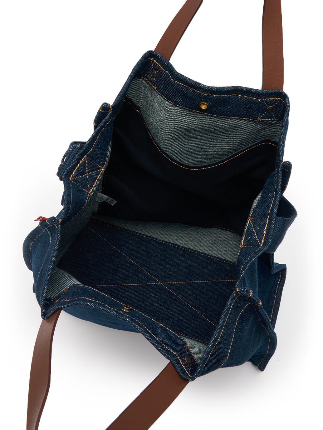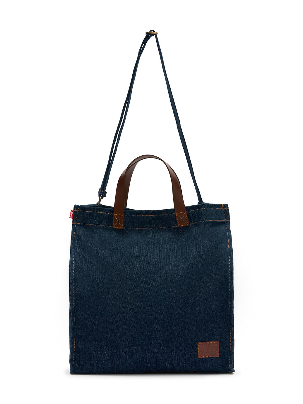 Levi’sらしく耐久性に優れたデニム生地を使用したトートバッグ。調整可能なストラップ、内側にスリップポケットを配したデザイン特徴です。ツーホース・マークのレザーパッチも配し、機能性とデザイン性を兼ね備えたアイテムです。