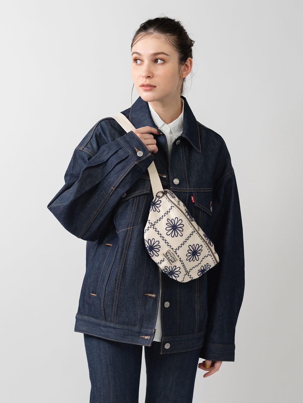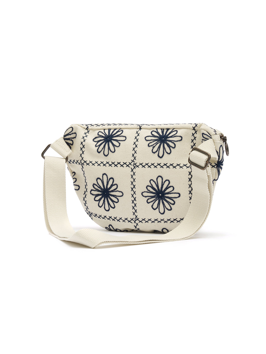 ホワイトカラーに花柄をあしらったデザインのクロスボディバッグ。必需品を収納できる2.5Lのサイズ感と調整可能なストラップもポイントです。どの季節にも持っていると便利なアイテムです。