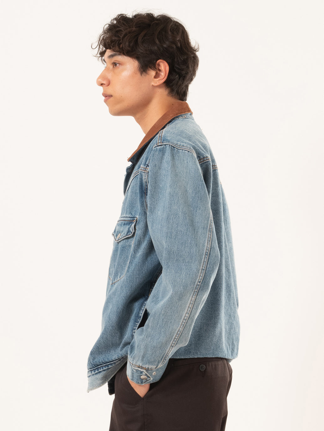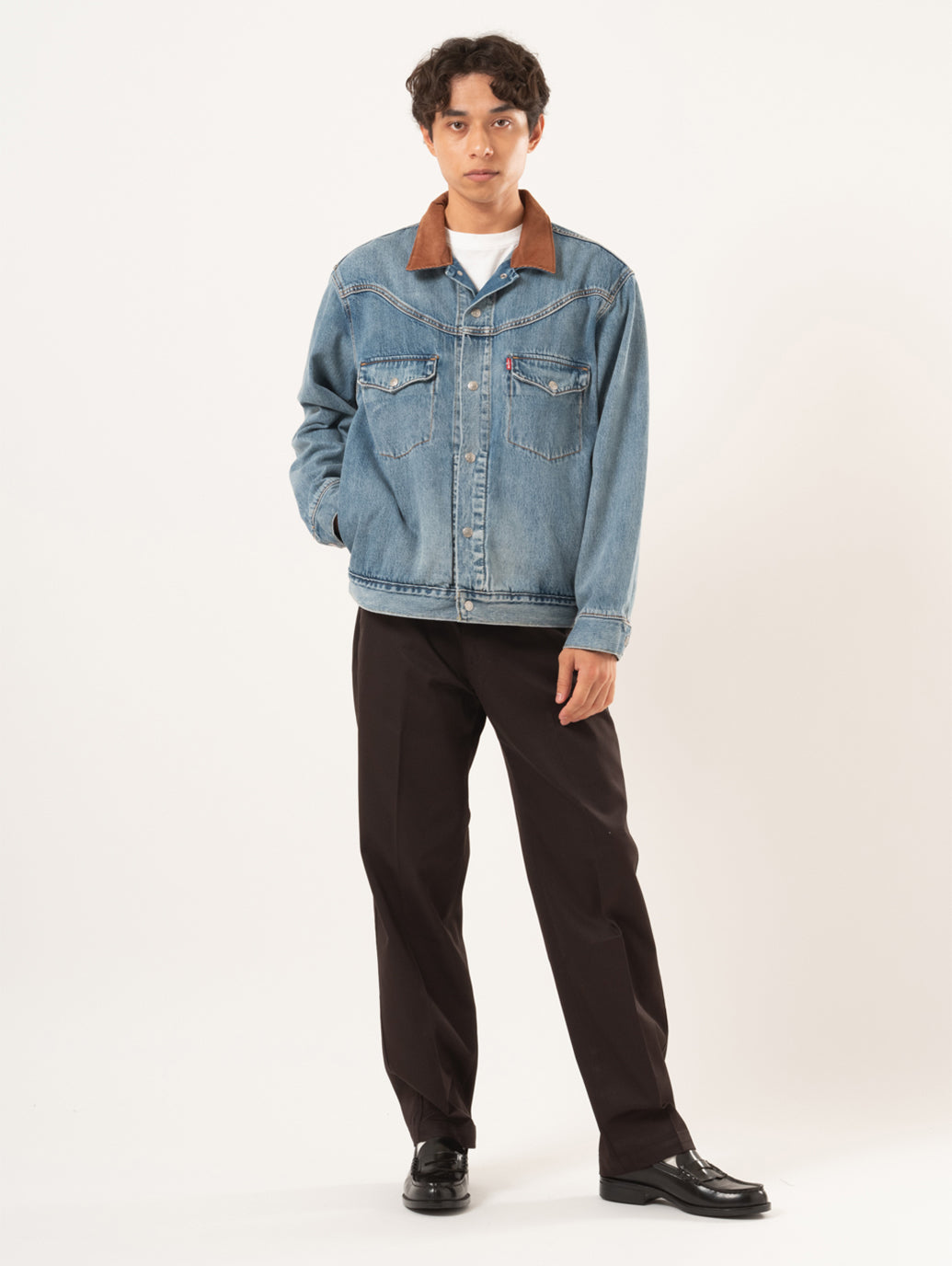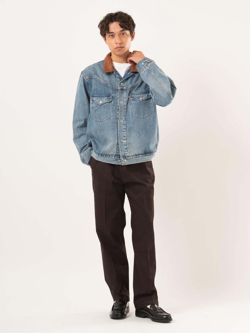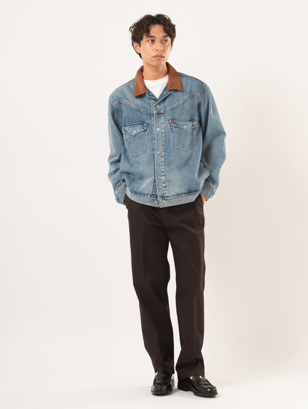 ウエスタンショートホーン・トラッカージャケットは、ボタンフロントとウエスタンヨークがさりげなく個性を放ち、ゆったりしたシルエットで抜群のリラックス感を演出。ジーンズにもスラックスにも馴染む、ストリートから大人カジュアルまで自在にハマるモダンクラシックなジャケットです。