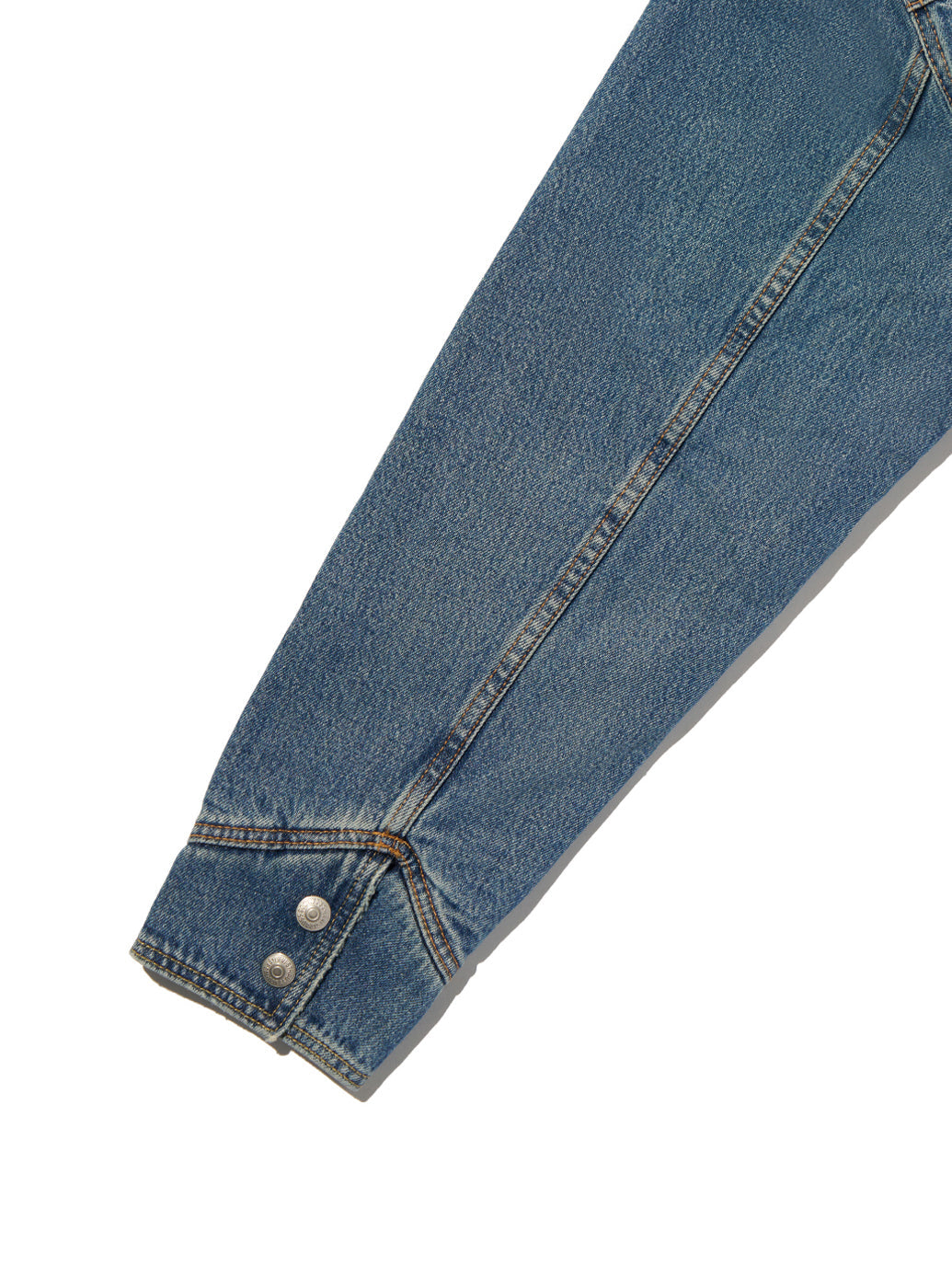 しっかりとしたデニム素材に、襟と裏地のボアを組み合わせることで、暖かさと快適さを兼ね備えています。