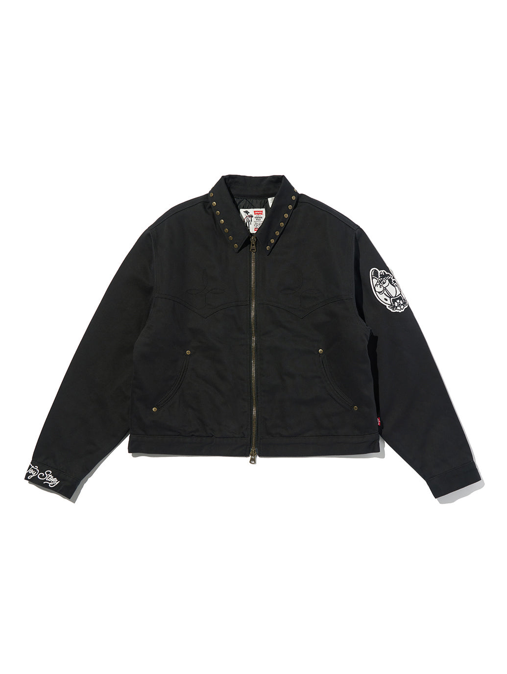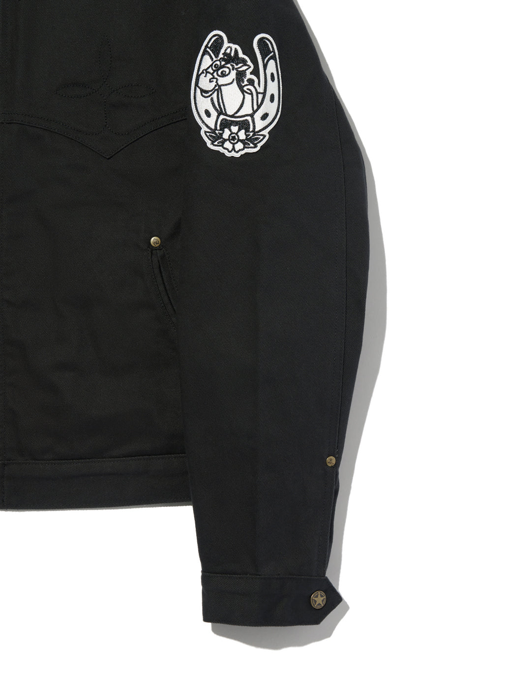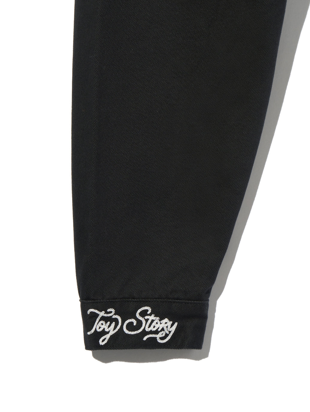限定版のキルティングウエスタンジャケットは、ボックス型のクロップドシルエットが特徴。 襟には、映画から着想を得た5つのモチーフ ― ウッディのベルトバックル、スペースレンジャーのロゴ、ピザプラネットのエンブレム、ウッディのブーツのロゴ、サボテンをあしらったカスタムスタッズを配置しています。 さらに、フェルト製ブルズアイの刺繍パッチや、袖口に施された「トイ・ストーリー」のチェーンステッチがアクセントとなり、特別感あふれる一着に仕上がっています。