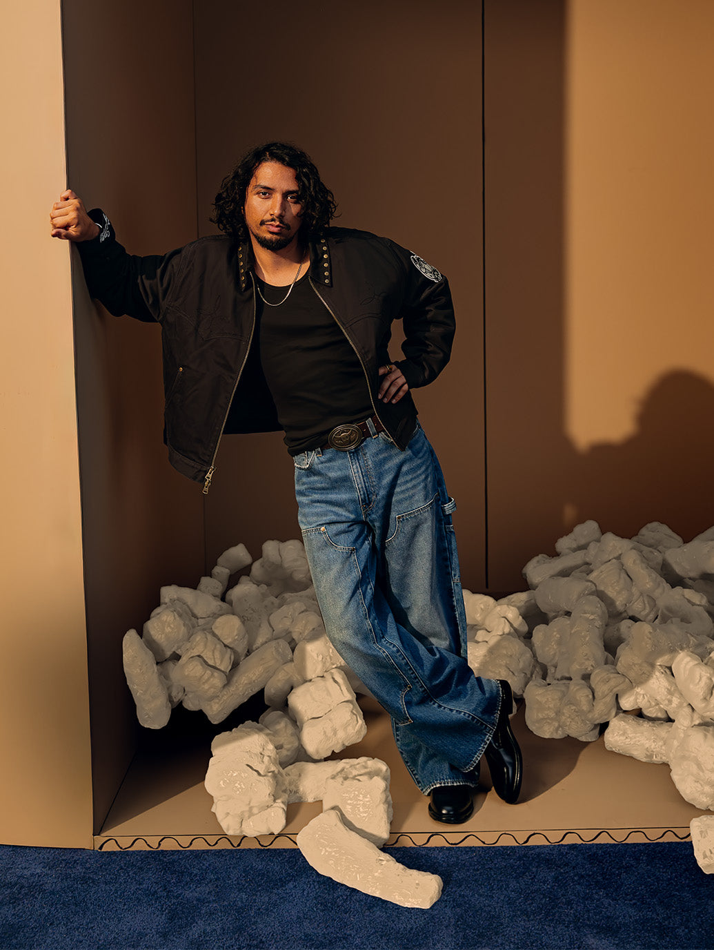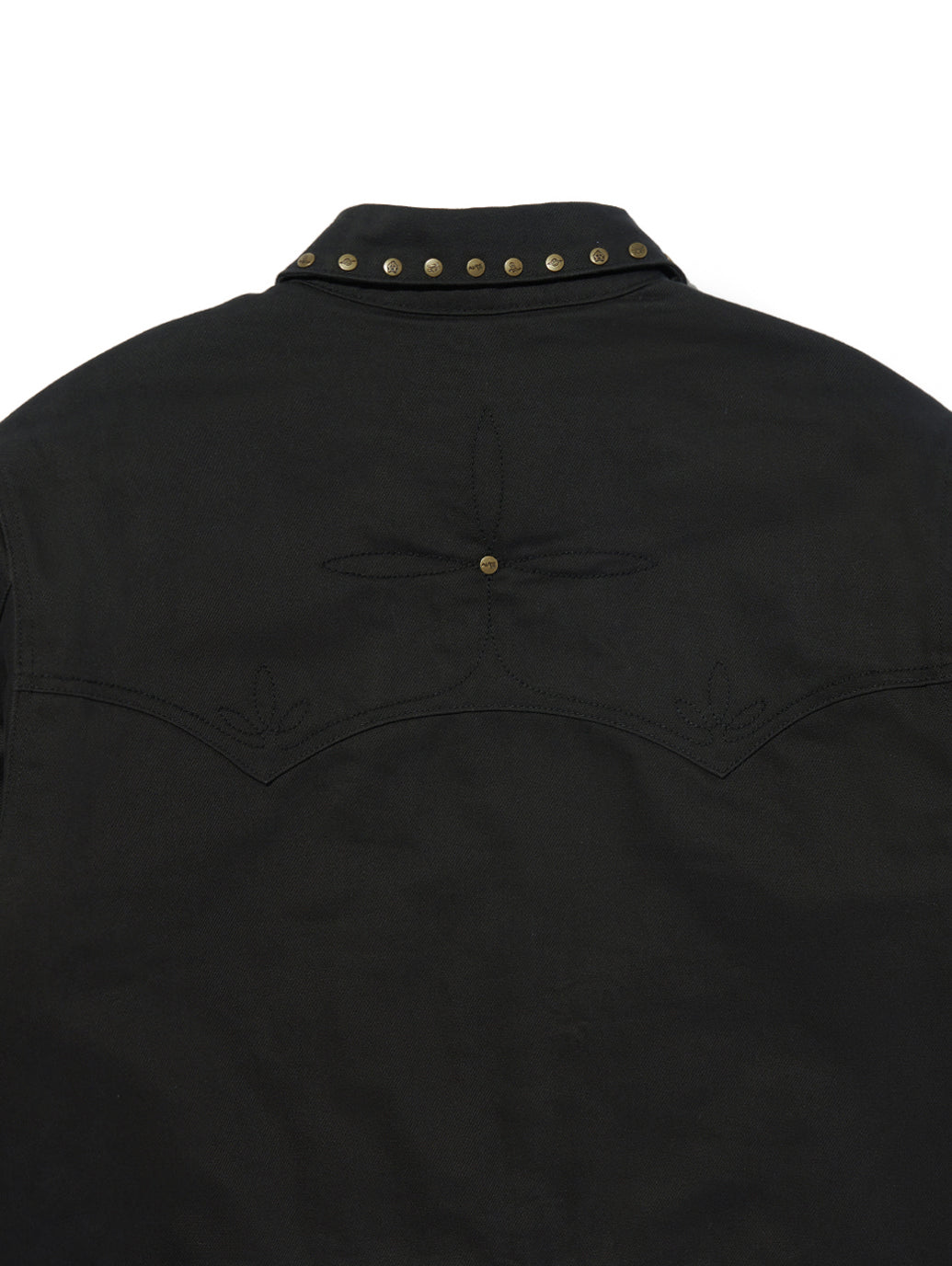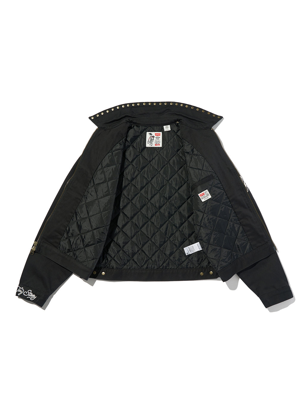 限定版のキルティングウエスタンジャケットは、ボックス型のクロップドシルエットが特徴。 襟には、映画から着想を得た5つのモチーフ ― ウッディのベルトバックル、スペースレンジャーのロゴ、ピザプラネットのエンブレム、ウッディのブーツのロゴ、サボテンをあしらったカスタムスタッズを配置しています。 さらに、フェルト製ブルズアイの刺繍パッチや、袖口に施された「トイ・ストーリー」のチェーンステッチがアクセントとなり、特別感あふれる一着に仕上がっています。