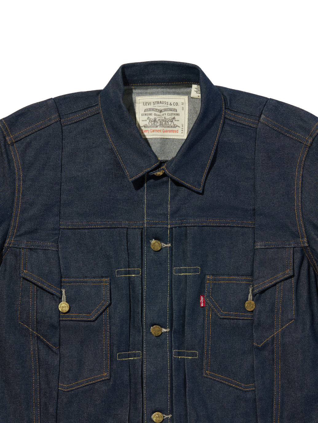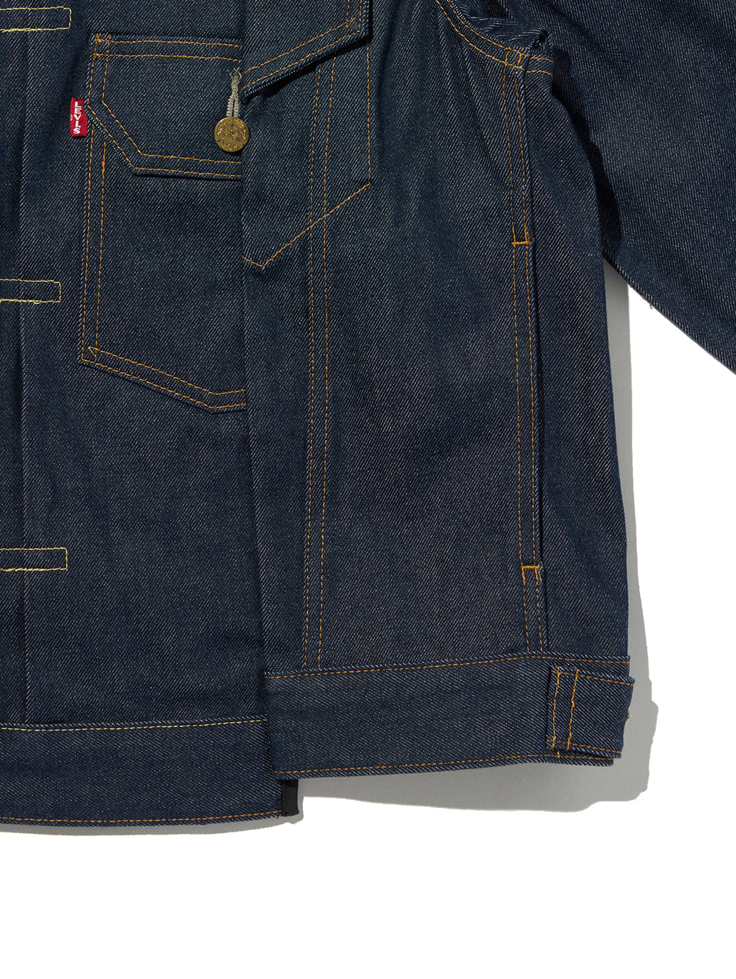 アイコニックなタイプI、タイプII、タイプIIIのトラッカージャケットをベースに、限定版デニムジャケットを製作しました。シンプルなシルエットに落とし込んだこのジャケットは、ボックス型のややAラインカット、タイプIジャケットにインスパイアされたクラシックなシンチを備えたバック、そしてタイプIIとタイプIIIを彷彿とさせるフロントデザインが特徴です。さらに、ジャケットの彫刻的なフォルムを維持するバインディングシームやガゼットなど、細部にまでこだわったディテールで仕上げています。
