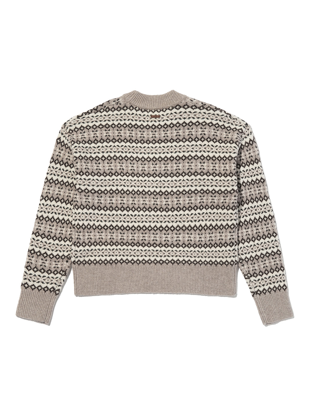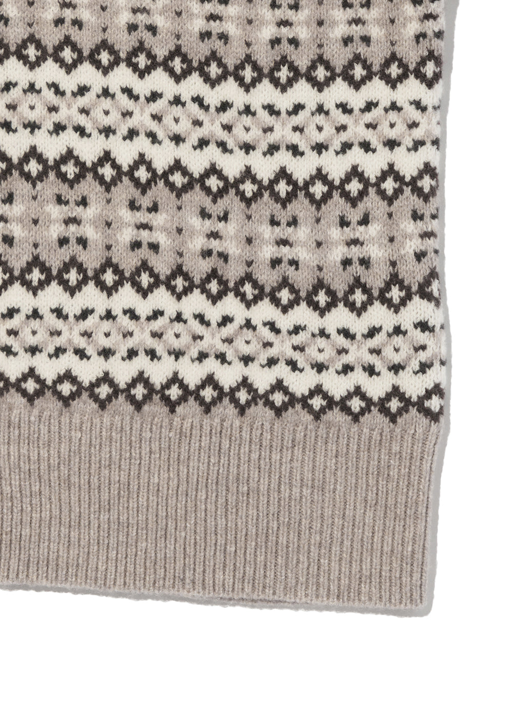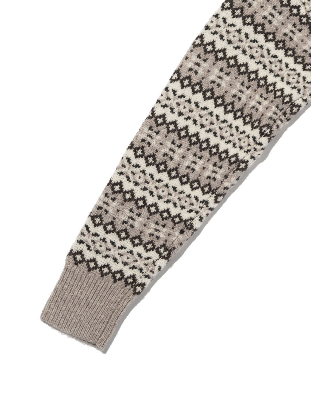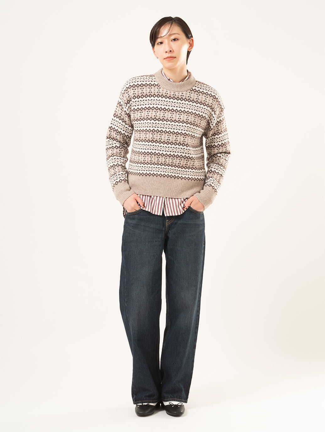 究極の快適性を誇るフェアアイルセーター。クルーネックとリブ編みの裾がクラシックな印象を演出し、リラックスフィットで快適な着心地を実現します。日常のカジュアルスタイルからレイヤードまで幅広く活躍する一着です。