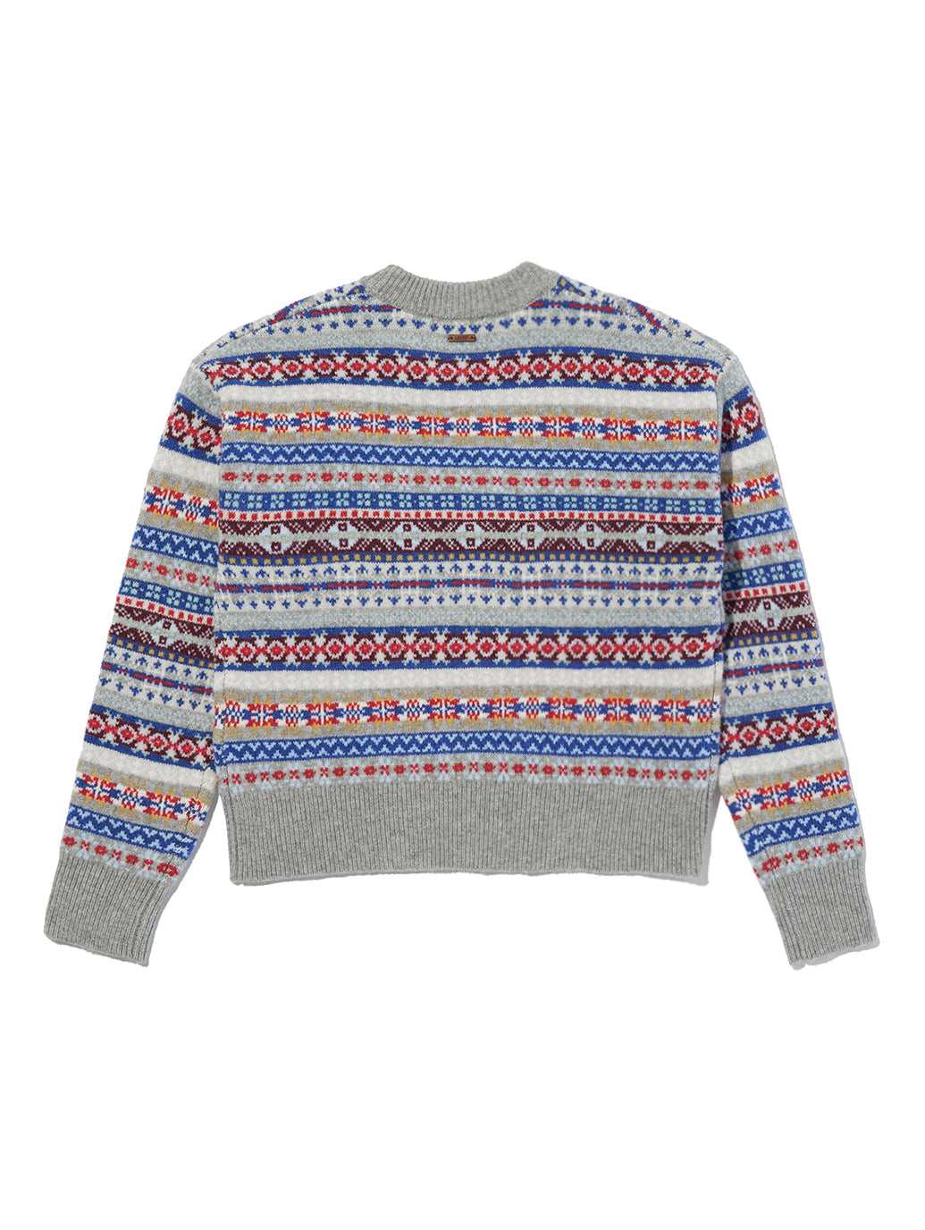究極の快適性を誇るフェアアイルセーター。クルーネックとリブ編みの裾がクラシックな印象を演出し、リラックスフィットで快適な着心地を実現します。日常のカジュアルスタイルからレイヤードまで幅広く活躍する一着です。