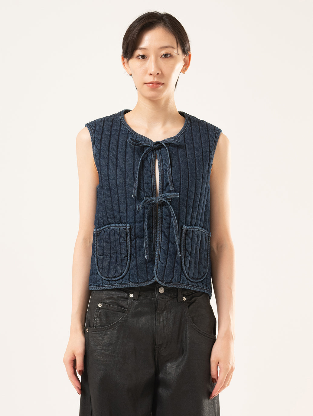 ロッティー ライナー ベストは、上品なキルティングデニムを使用したレディースベストです。タイ留めディテールとスタンダードフィットのシルエットが、コーディネートをスマートに引き締めます。デイリーカジュアルからきれいめスタイルまで幅広く合わせやすく、羽織るだけで着こなしに洗練された印象をプラスします。