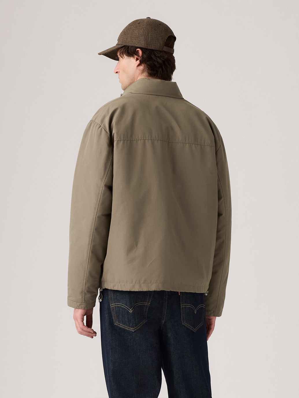 ショート丈のすっきりとしたシルエットに、立ち襟とフルジップフロントを組み合わせ、シンプルながら洗練された印象に仕上げました。
