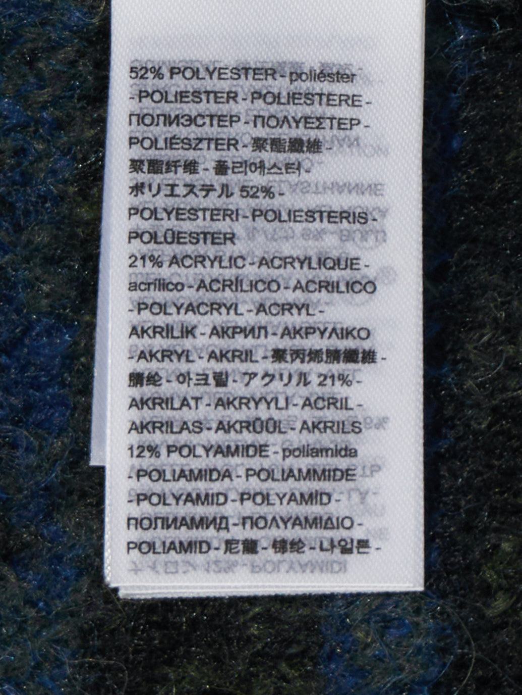 ・ポリエステル52%, アクリル21%, ナイロン12%, ウール6%, アルパカ6%, ポリウレタン3%
