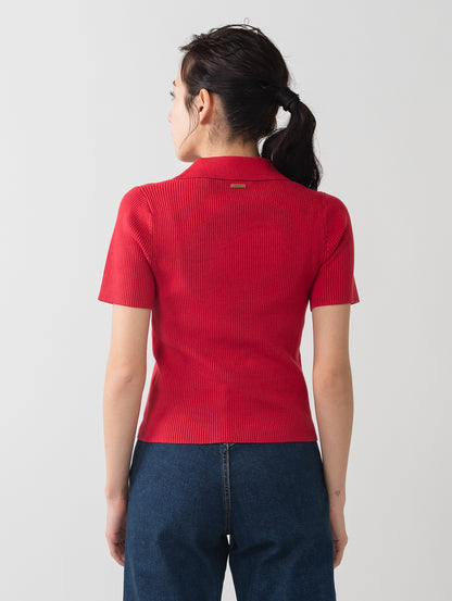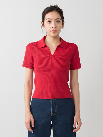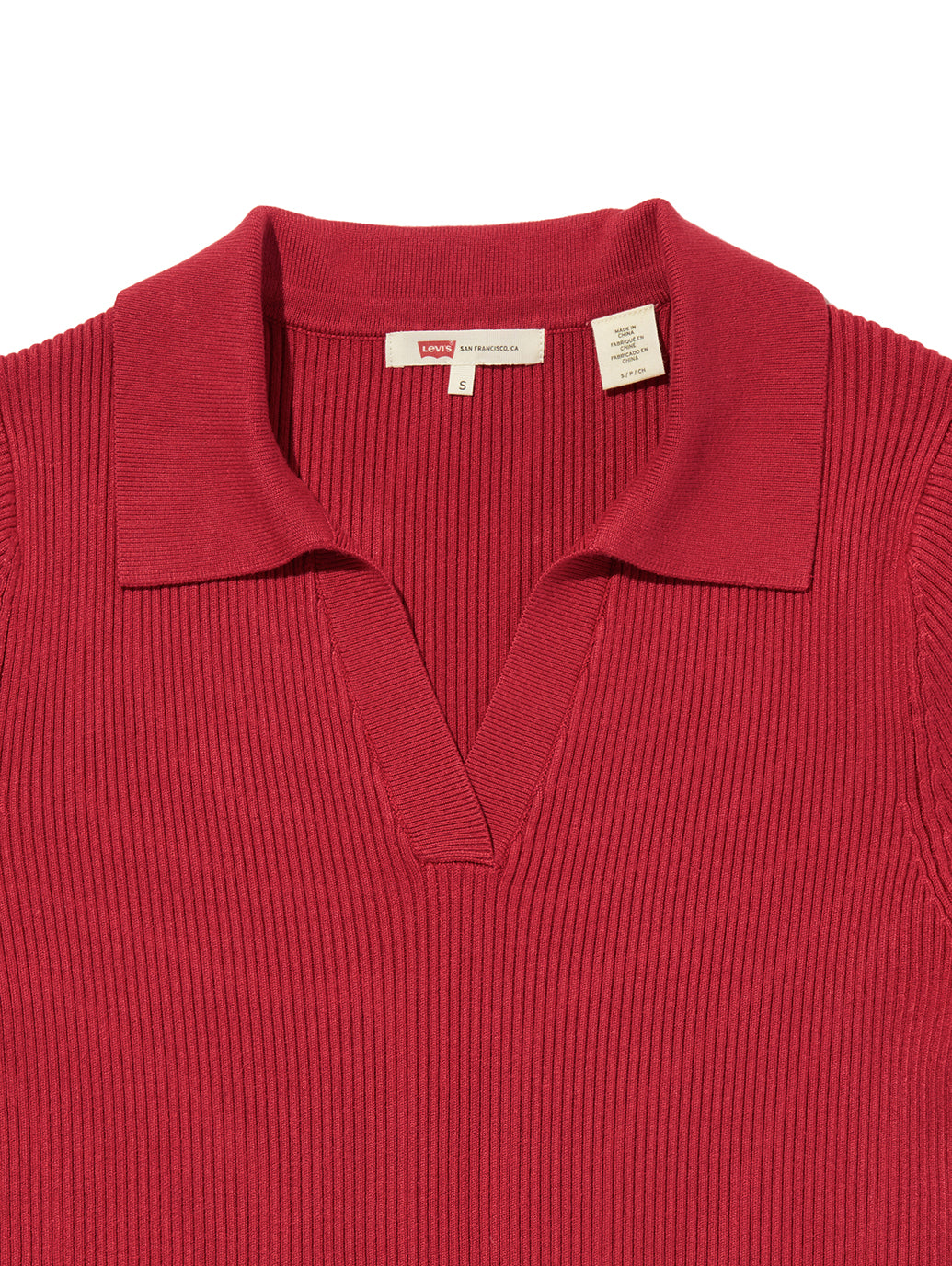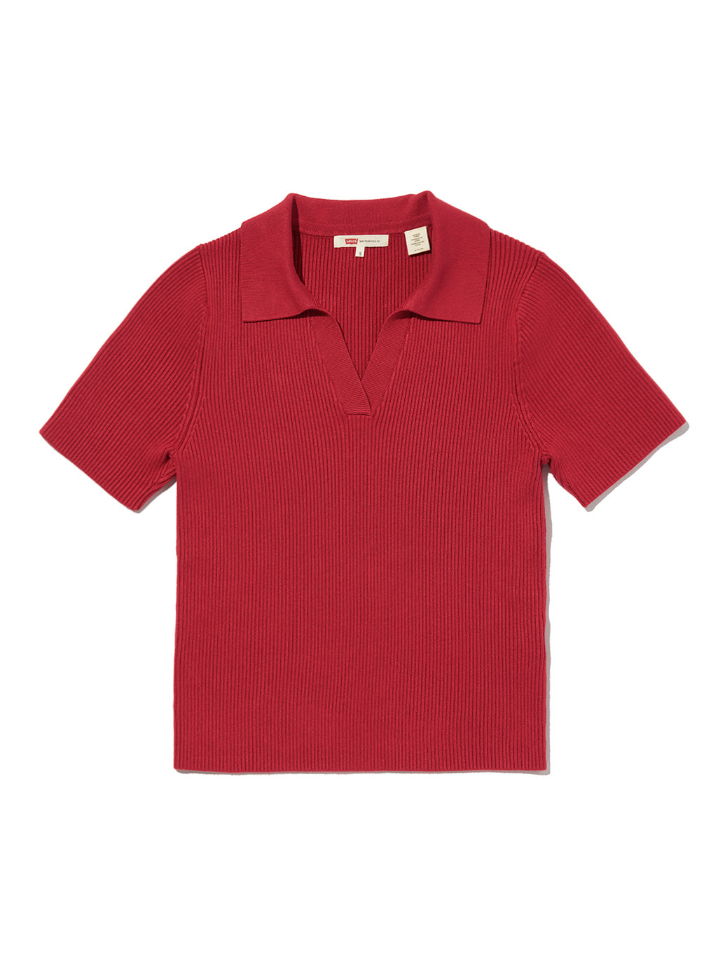 現代にあわせてリメイクされたクラシックなポロ。Levi'sのFaithセーターポロは、スタイルを引き立てるVネックや、タイムレスな襟の形、ソフトなリブニットなどのクラシック要素を大切にし仕上げました。目を引くレッドカラーのボディの生地はレーヨン90%が配合されており、しなやかでドレープ感のある生地感がポイントです。ワイドボトムスと合わせてメリハリを出すスタイリングがお勧めの一着です。