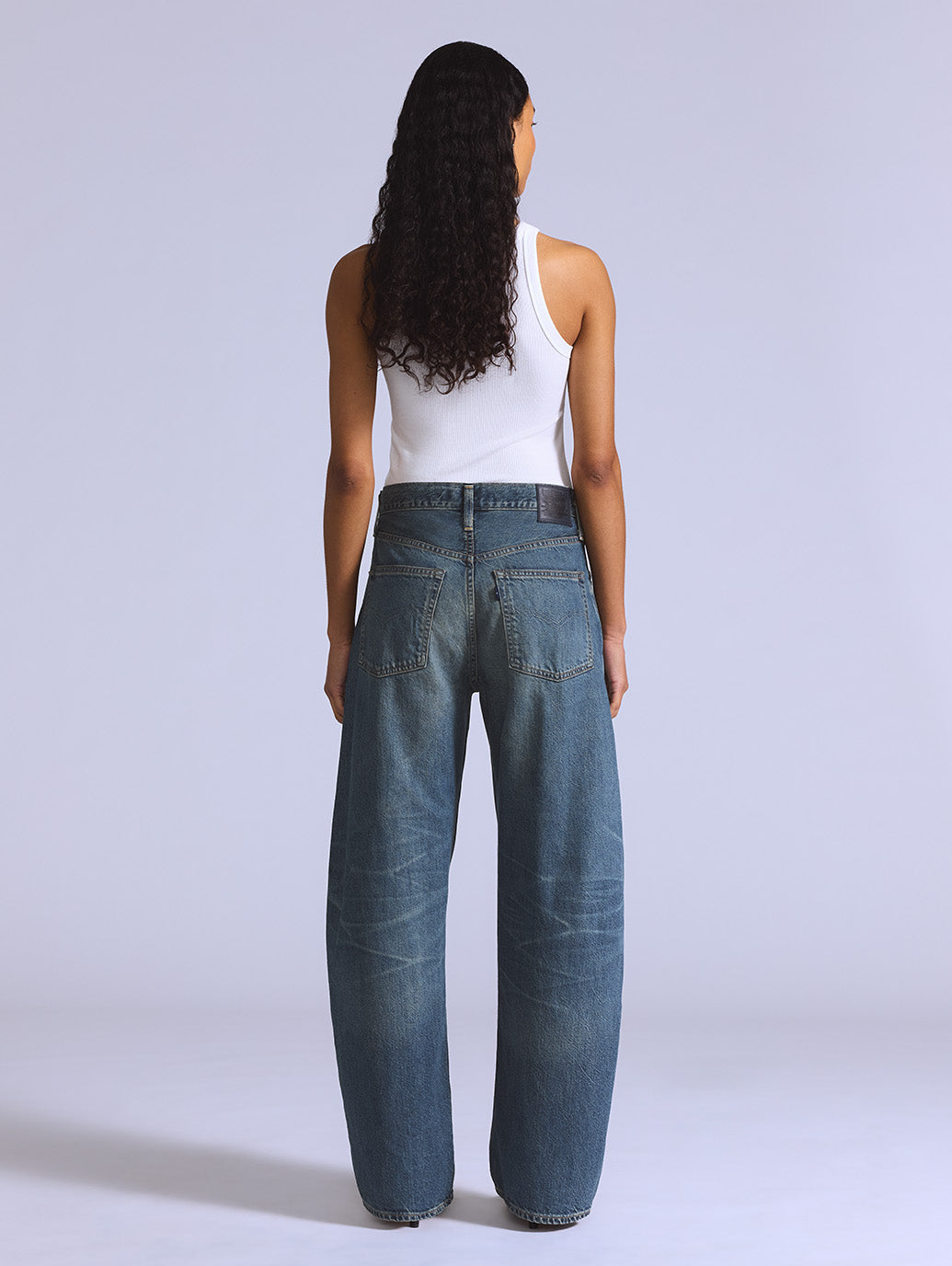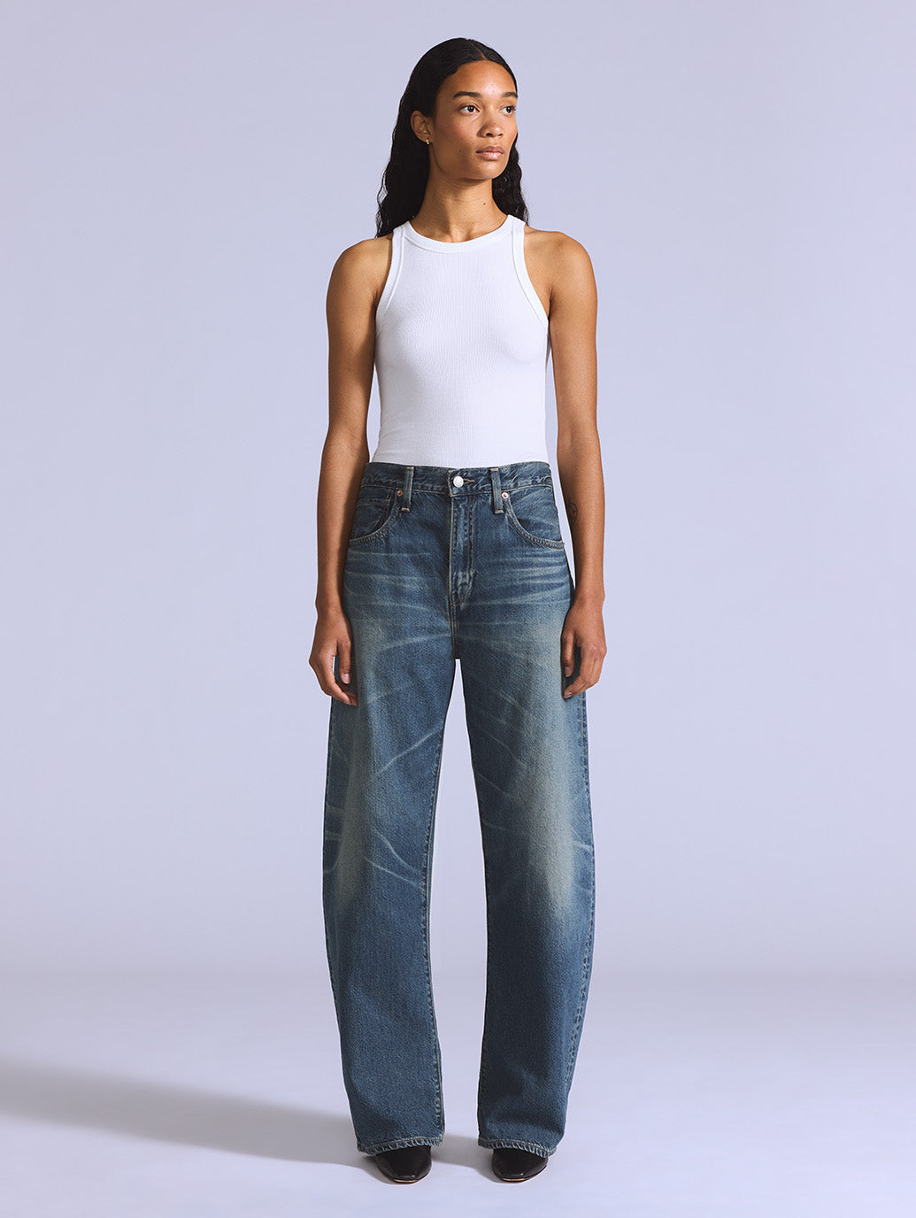 美しい曲線のドロップバレルジーンズは、ミッドライズ、ゆったりとしたリラックスフィット。そしてバレルシェイプのレッグが特徴です。