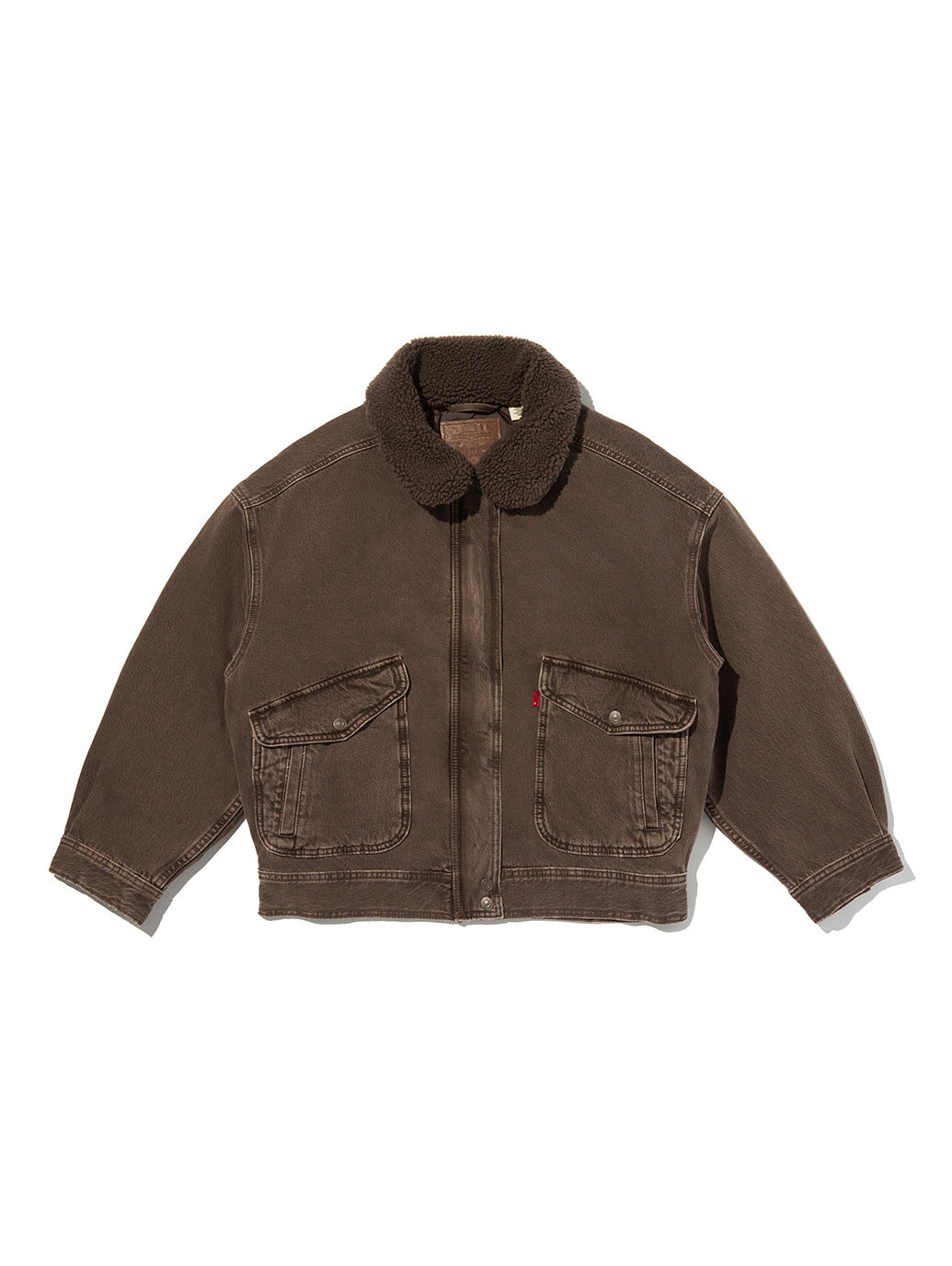 シェルパ ボンバージャケットは、フェイクムートンの襟とボタンアップフロントが特徴です。