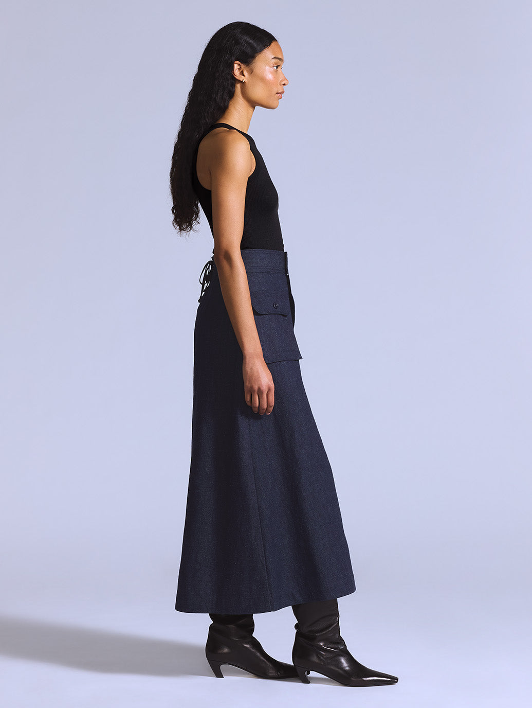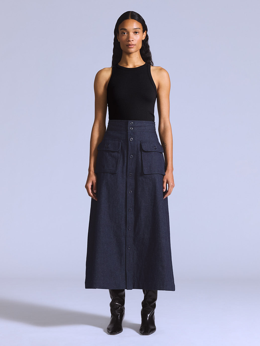 上品さとカジュアルさを兼ね備えた、クラシックなデニムスカート。