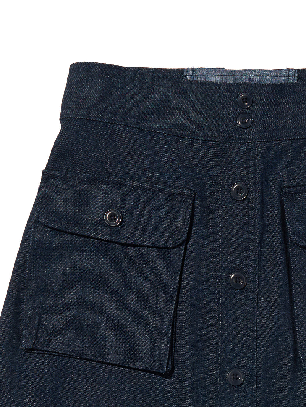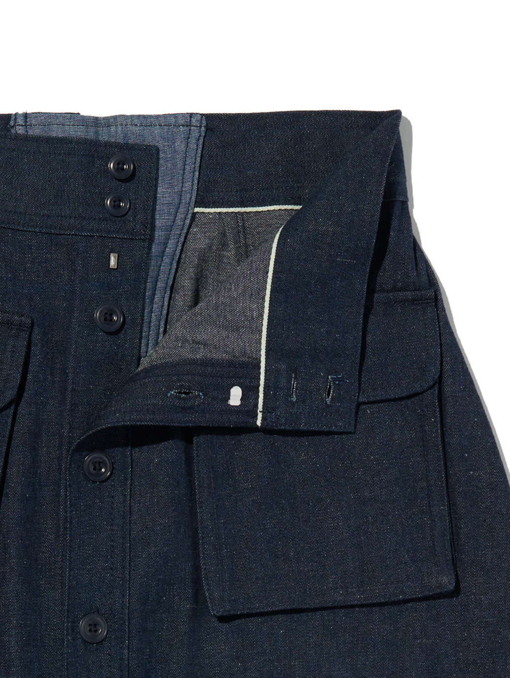 フロントのボタンアップデザインと大きめのフラップポケットが、ヴィンテージなアクセントに。シャツやニットをインしても、ラフにスウェットを合わせてもバランス良く決まる、