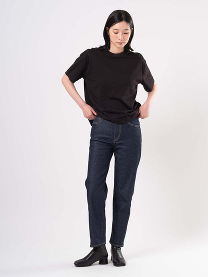 Daily Teeは、ほどよくしっかりとした生地感と厚めのクルーネックラインで、きちんと見えするスタンダードなシルエット。