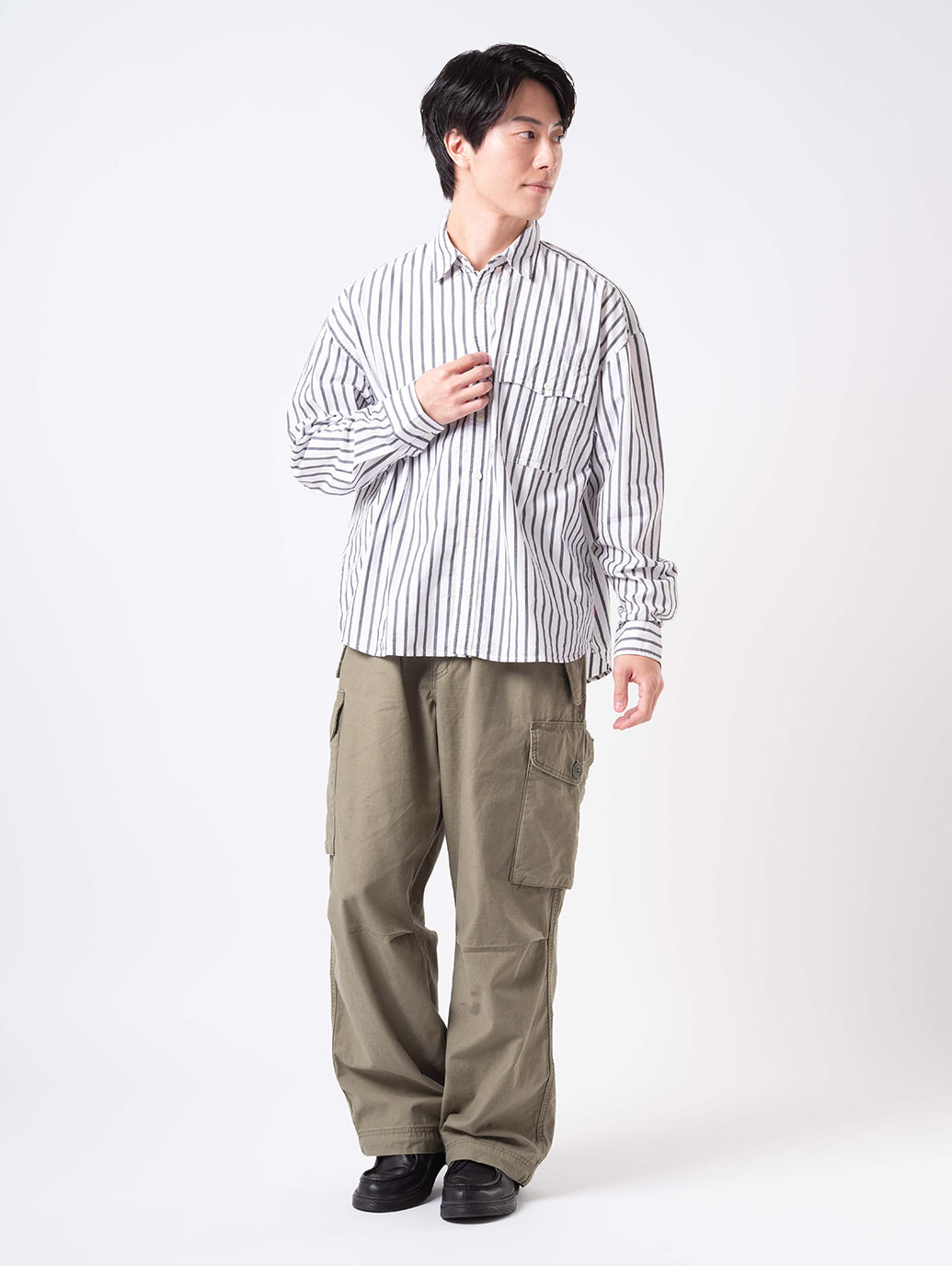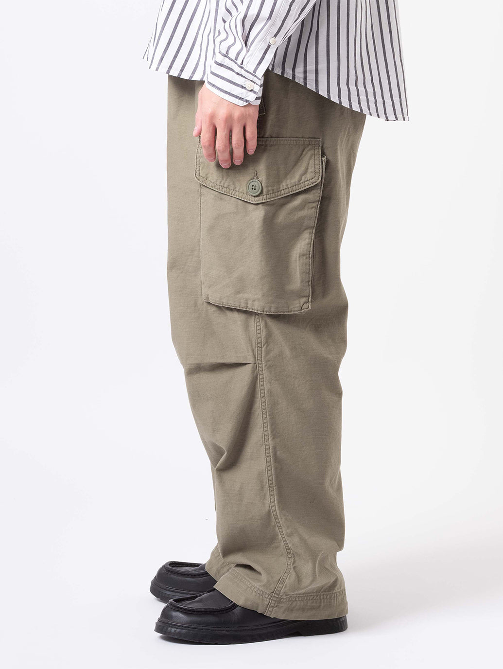 近年の90'sのリバイバルとしてその名の通りルーズでゆったりとしたストレートシルエットにワークテイストを落とし込んだパンツです。カーキカラーで耐久性のある綿100%の生地、通常の5ポケットに加え2つのカーゴポケットが配されているのが特徴です。ファッションアイテムとしてのみならず作業着としても活躍する一本です。
