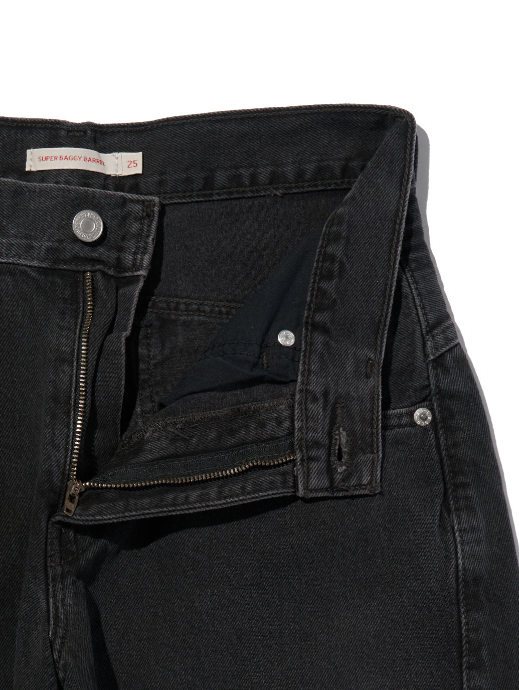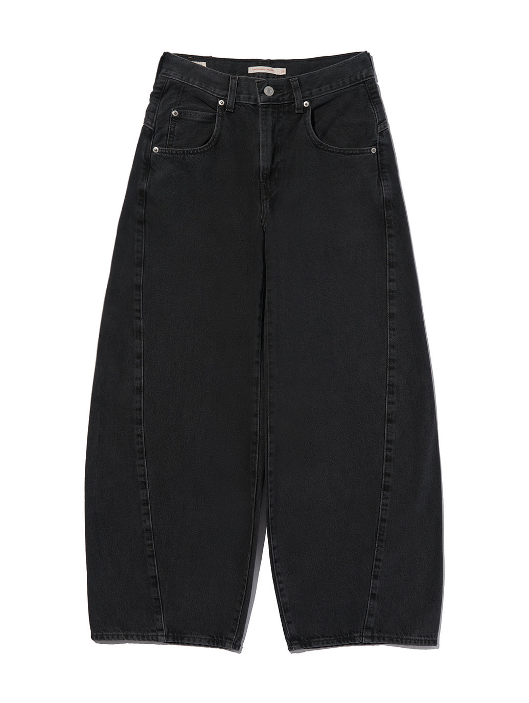 大胆なシェイプと快適な履き心地を兼ね備えた スーパーバギーバレルジーンズ。ゆったりとしたミッドライズ、特徴的なカーブレッグカット、そしてエクストラオーバーサイズのフィット感で、快適でエフォートレスな履き心地を実現します。さらに、アーカイブデザインを踏襲したバックポケットやスクープフロントポケット、コーティング加工を施したディテールが、ワイドジーンズならではの存在感を際立たせます。