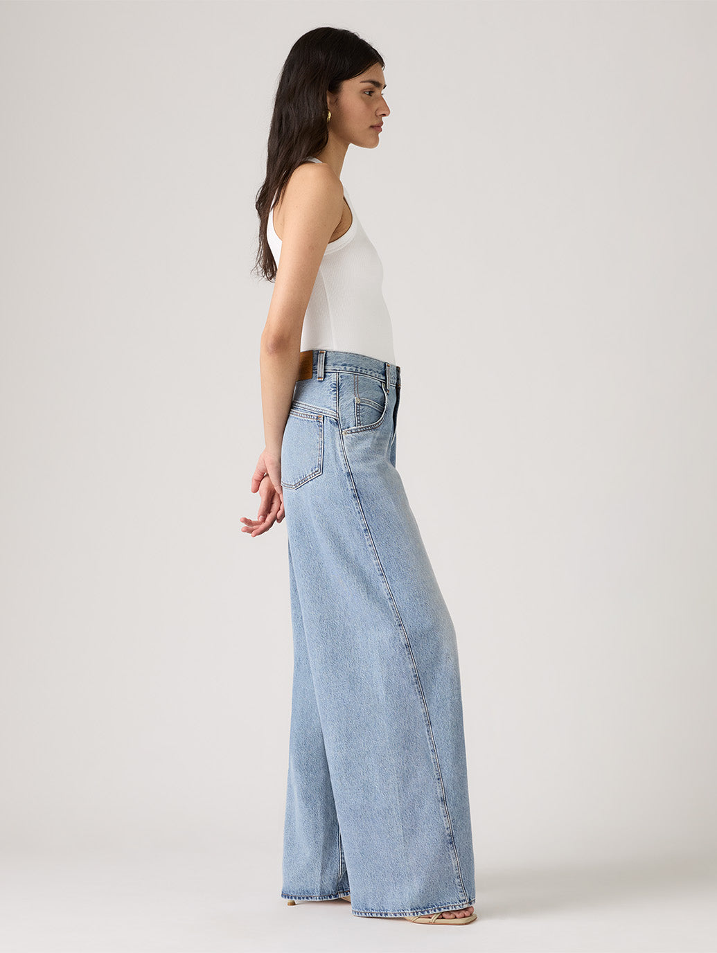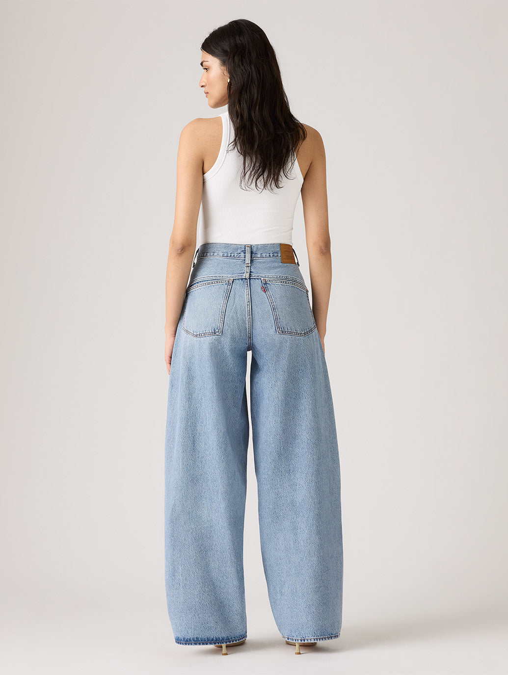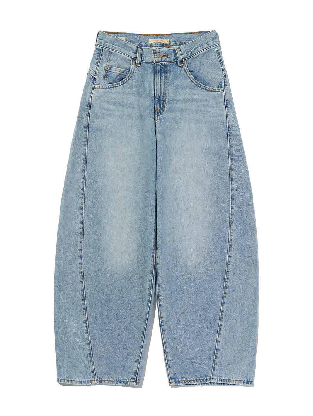 大胆なシェイプと快適な履き心地を兼ね備えた スーパーバギーバレルジーンズ。ゆったりとしたミッドライズ、特徴的なカーブレッグカット、そしてエクストラオーバーサイズのフィット感で、快適でエフォートレスな履き心地を実現します。さらに、アーカイブデザインを踏襲したバックポケットやスクープフロントポケット、コーティング加工を施したディテールが、ワイドジーンズならではの存在感を際立たせます。