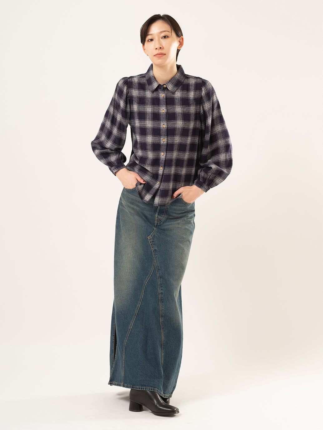 Journey ウエスタンシャツは、クラシックなボタン留めのフロントと、特徴的なウエスタンヨークのディテールを備えた一枚です。程よくボリュームのある袖がデザインのアクセントとなり、カジュアルからトレンド感あるスタイルまで幅広く活躍します。