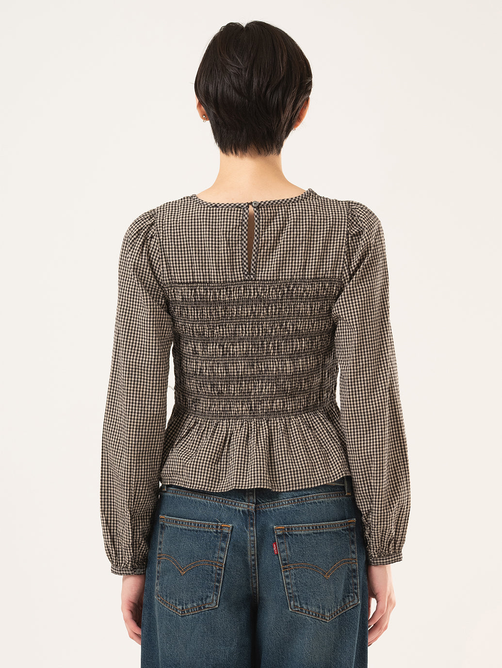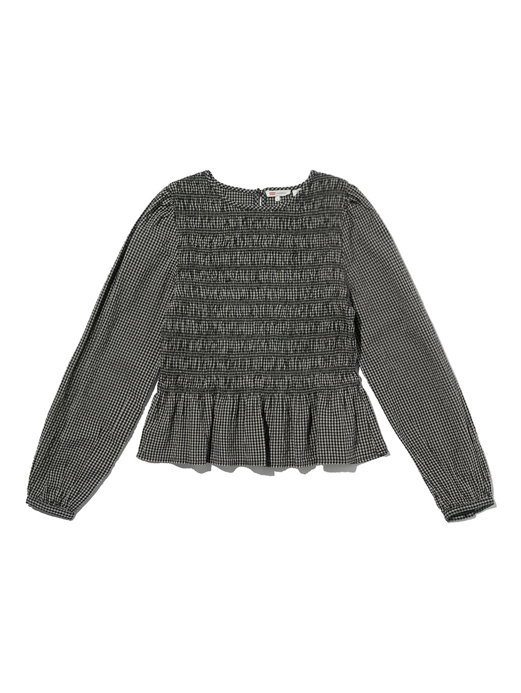 FLEUR シャツは、上品なハイネックラインに繊細なルーシュディテールをあしらったデザイン。さらに、ふんわりとしたボリュームスリーブが女性らしいシルエットを引き立てます。ロマンチックな雰囲気を演出できる一枚です。