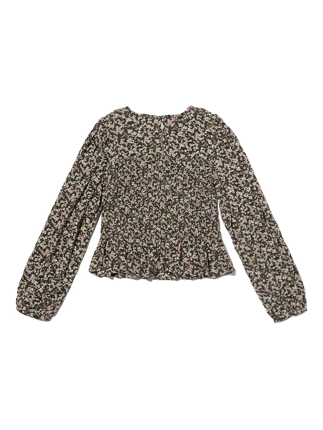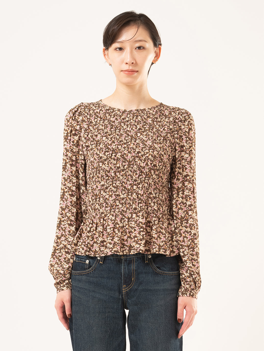 FLEUR シャツは、上品なハイネックラインに繊細なルーシュディテールをあしらったデザイン。さらに、ふんわりとしたボリュームスリーブが女性らしいシルエットを引き立てます。ロマンチックな雰囲気を演出できる一枚です。