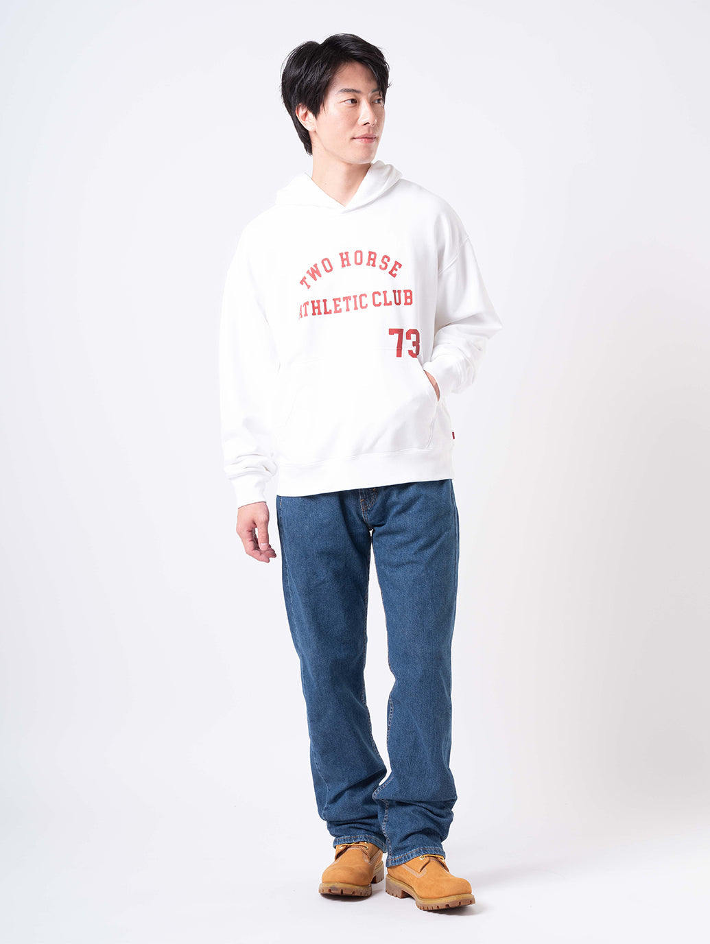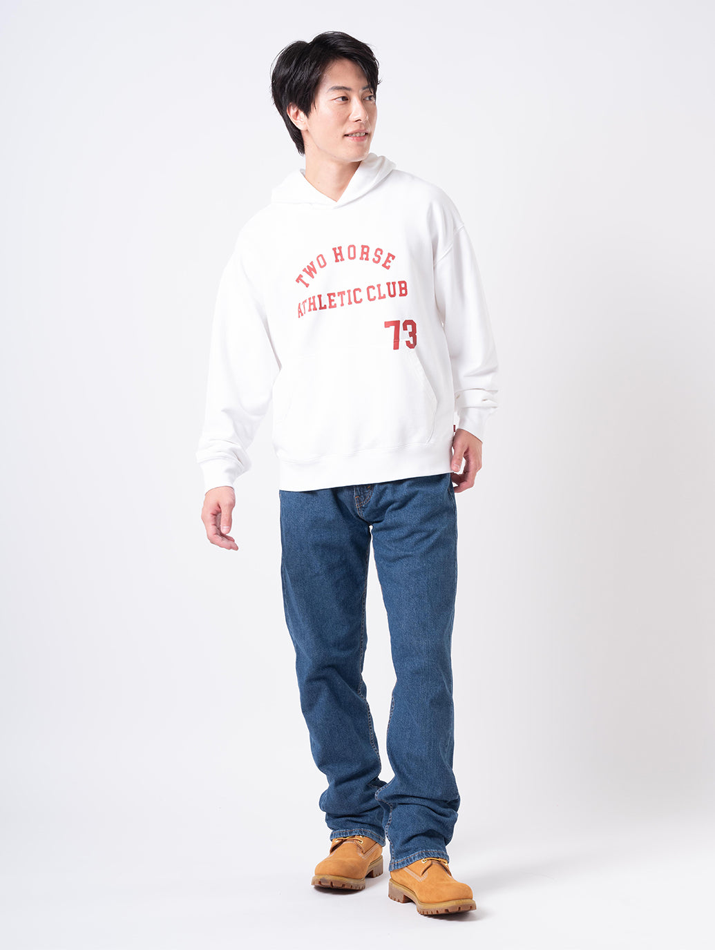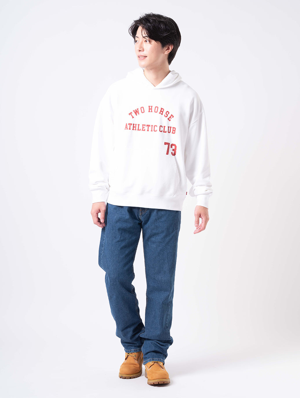 ストリートのムードを押さえつつ、レイヤードでも一枚でも存在感を放つフーディです。