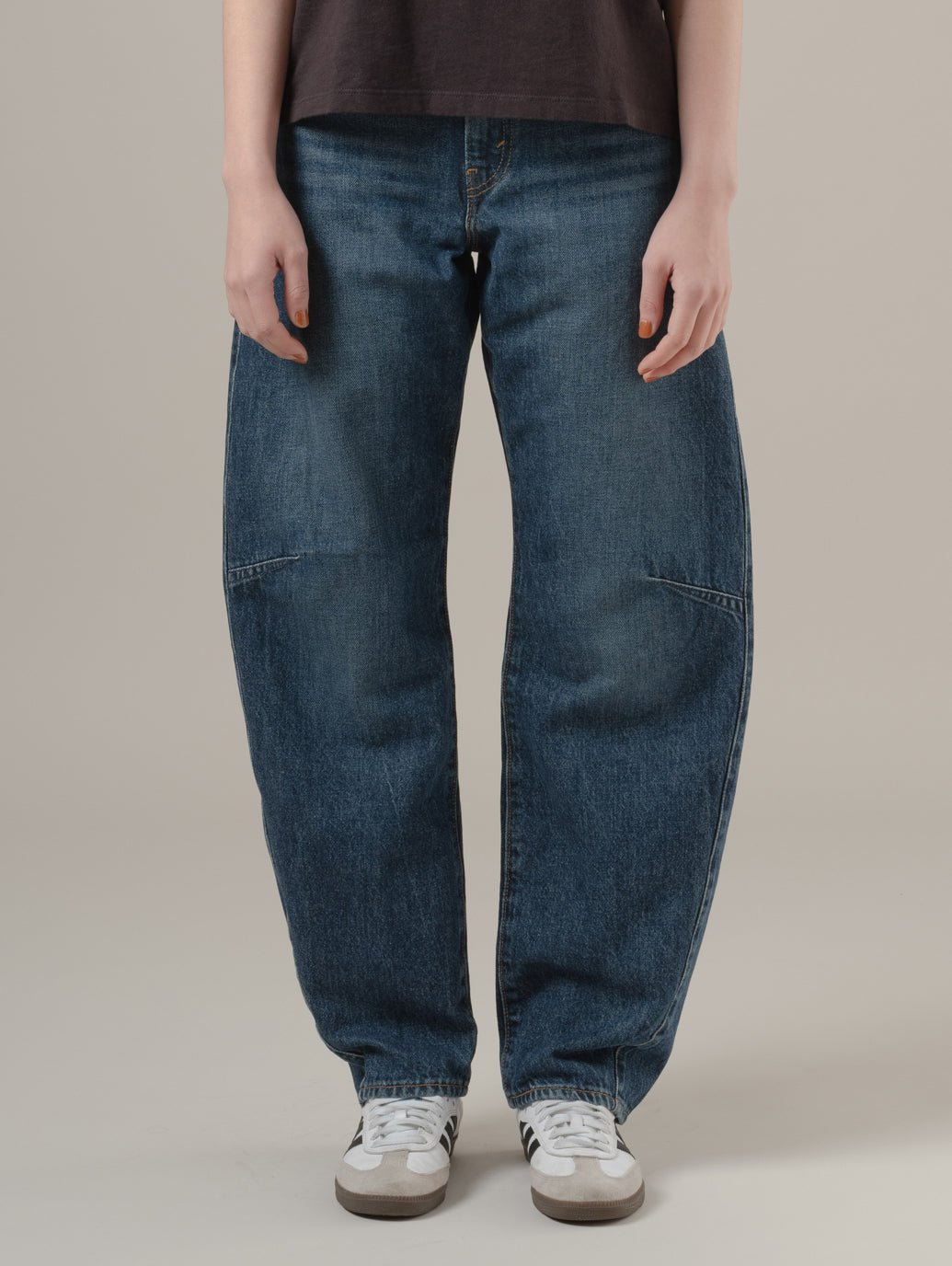 ウエストのフィット感にこだわった、シンチバレルジーンズ。 ハイライズでスタイルをきれいに見せつつ、立体的なカーブシルエットが脚のラインを美しく引き立てます。 バックのアジャスターでサイズ調整も可能。 ゆるさの中に女性らしさを感じる、今の気分にぴったりな一本です。