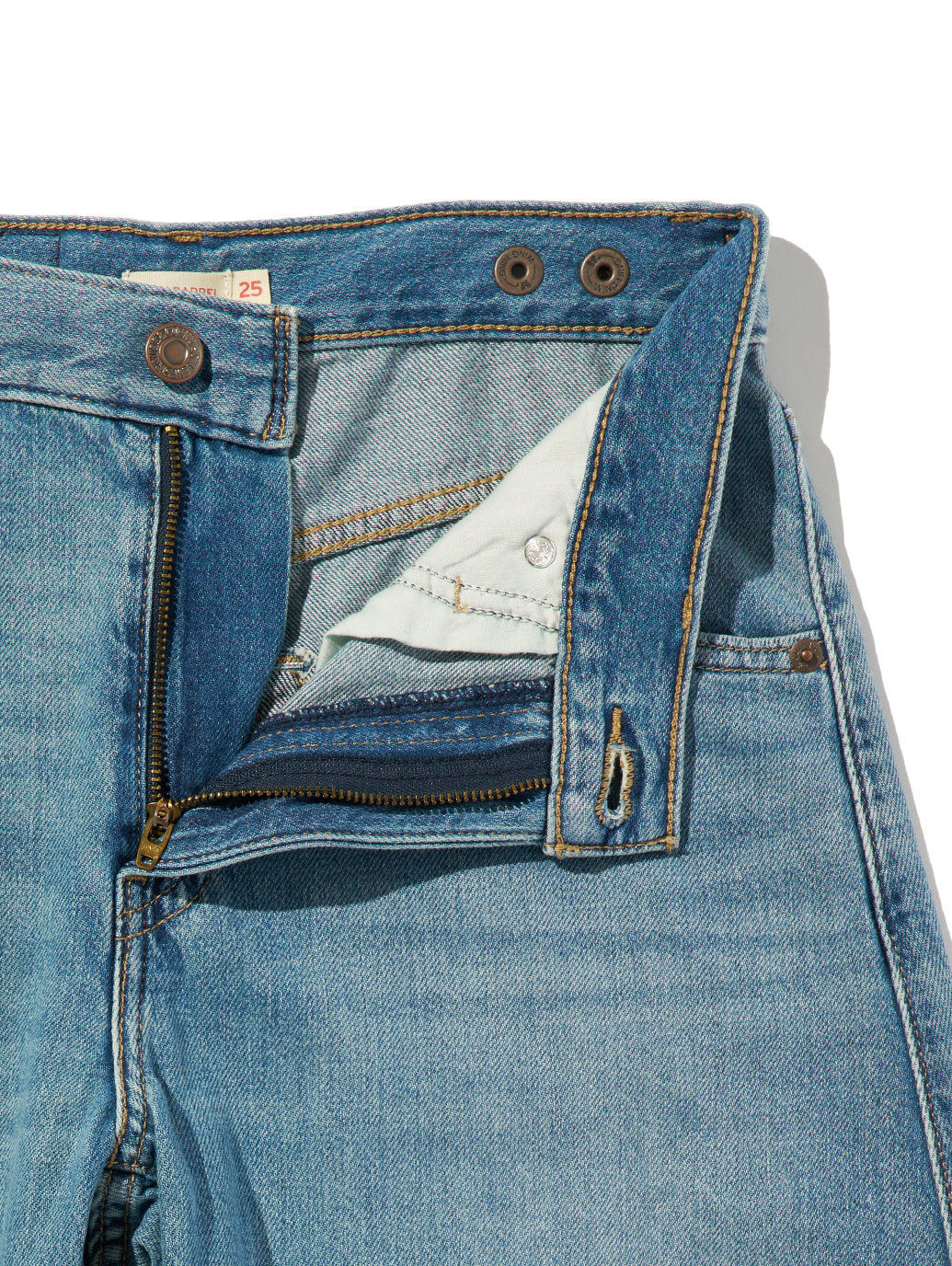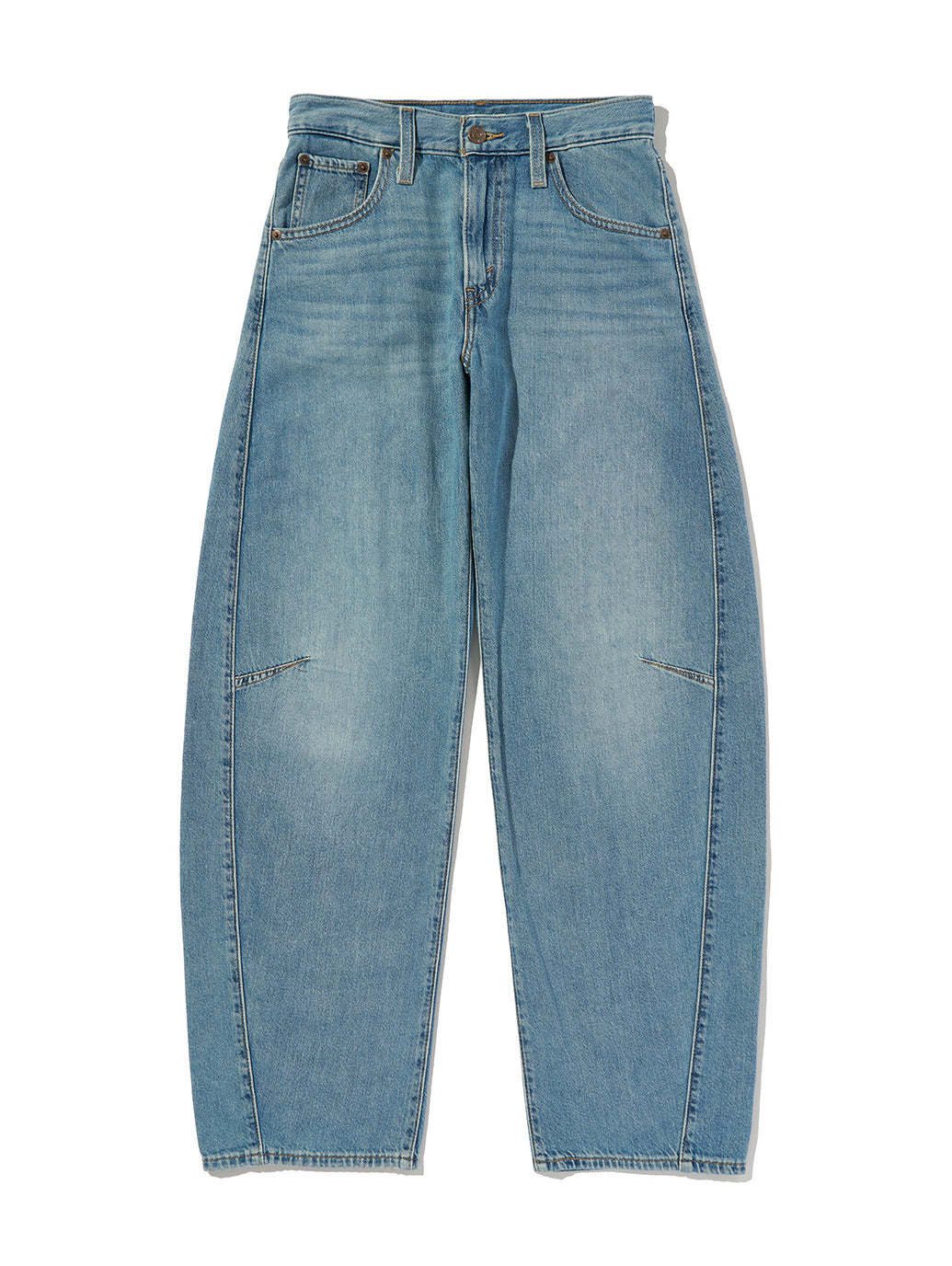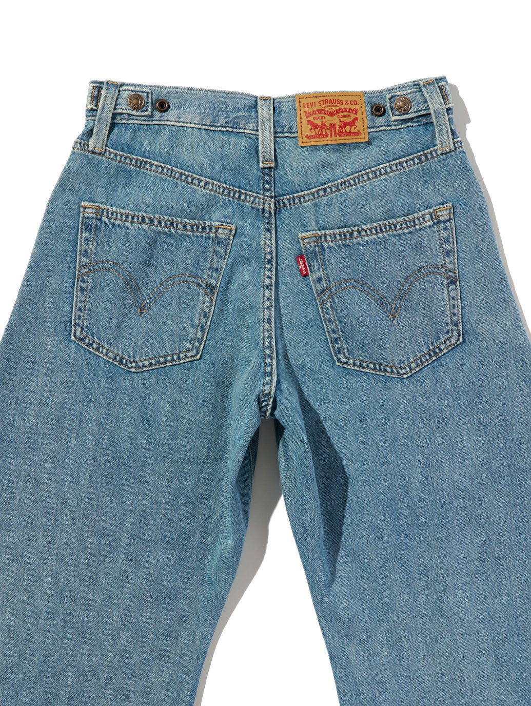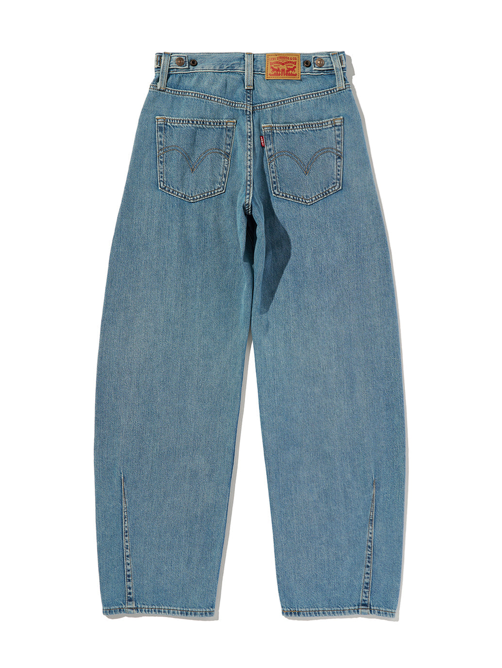 流行りのバギーデニムスタイルにもってこいのアイテム。 体型を美しく見せるハイライズとカーブしたレッグが特徴、背面のアジャスターでウエストを調整することができどんな体型にもフィットし、あらゆるラインを美しく引き立てます。