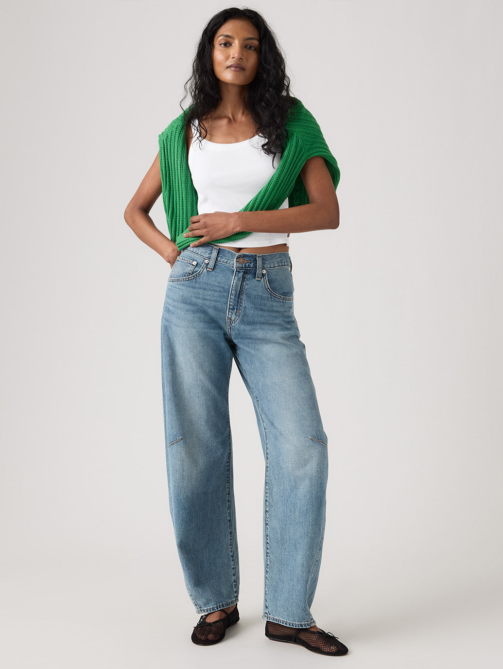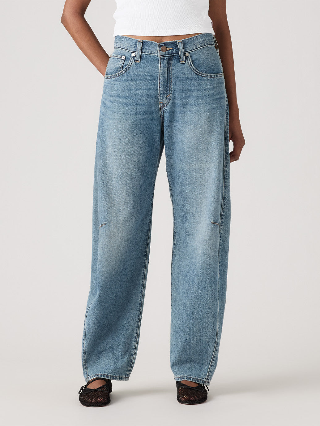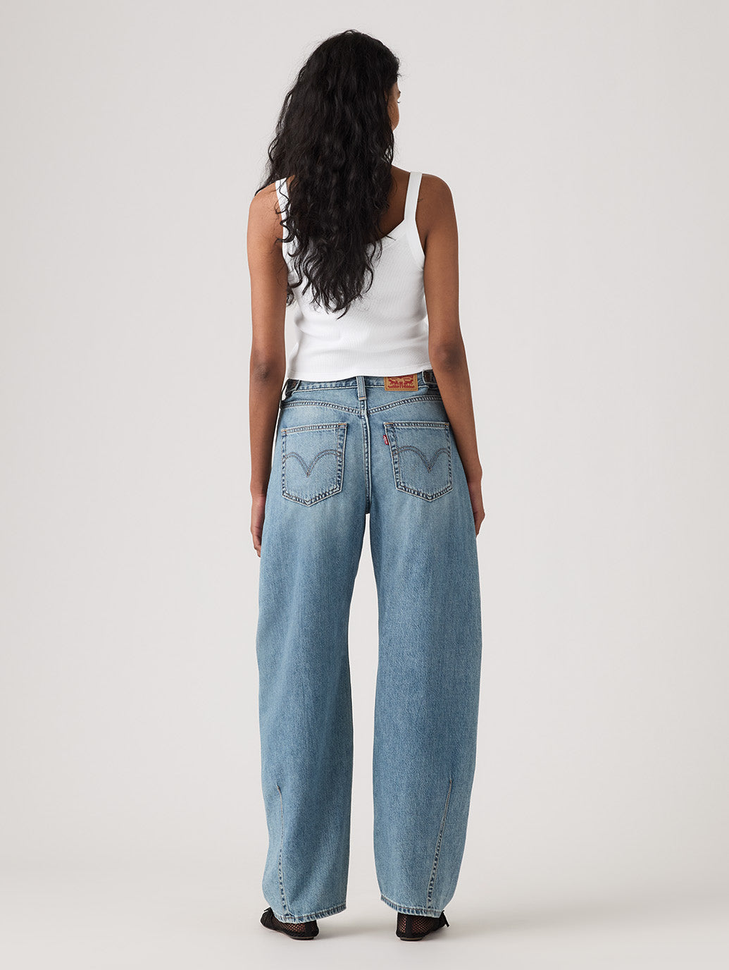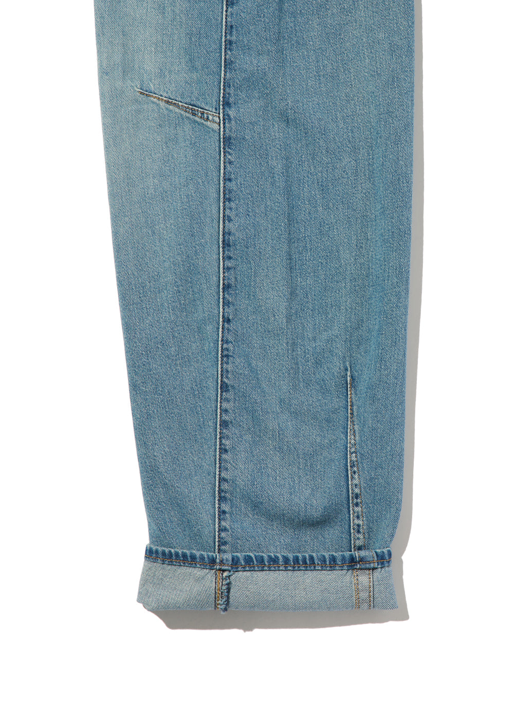 流行りのバギーデニムスタイルにもってこいのアイテム。 体型を美しく見せるハイライズとカーブしたレッグが特徴、背面のアジャスターでウエストを調整することができどんな体型にもフィットし、あらゆるラインを美しく引き立てます。