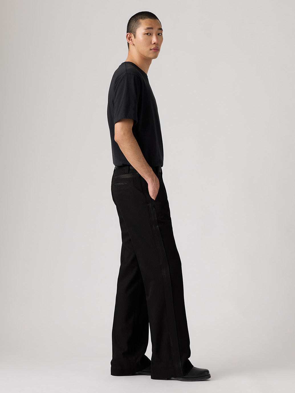 ドレッシーなパンツを、再解釈切りっぱなしのサテンディテール、サイドシームとバックダーツ、そしてサテンウエストバンドが特徴です。