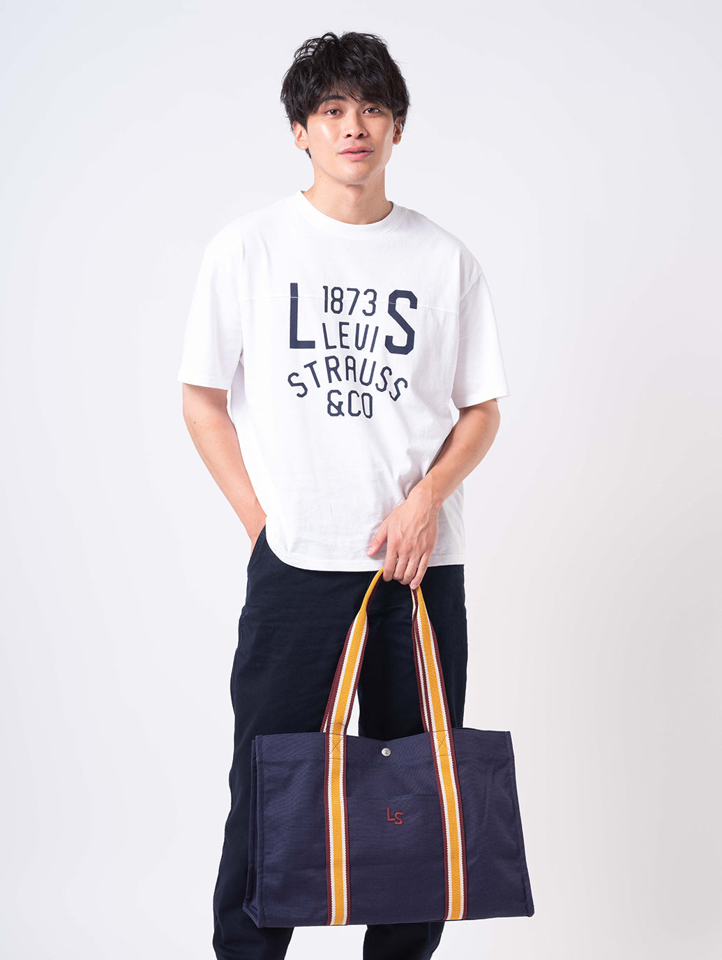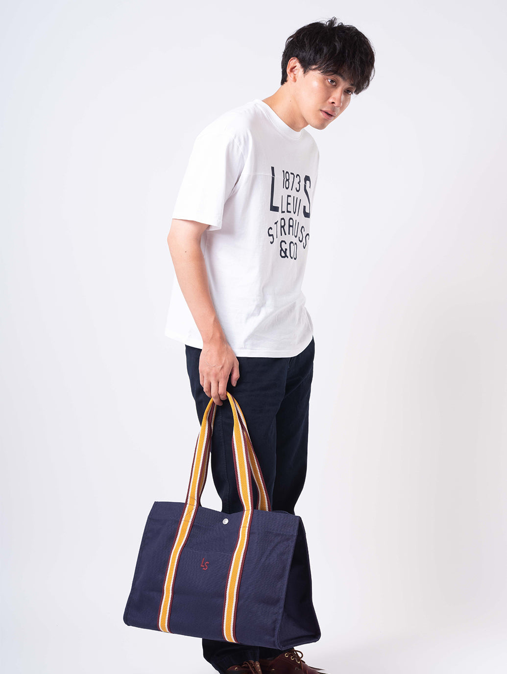 Levi’sらしいタフなコットンキャンバス製のトートバッグ。特大サイズの収納力で、荷物もたっぷり収納可能。スナップ開閉&丈夫なショルダーストラップで使いやすく、通勤や買い物、旅行にも最適です。
