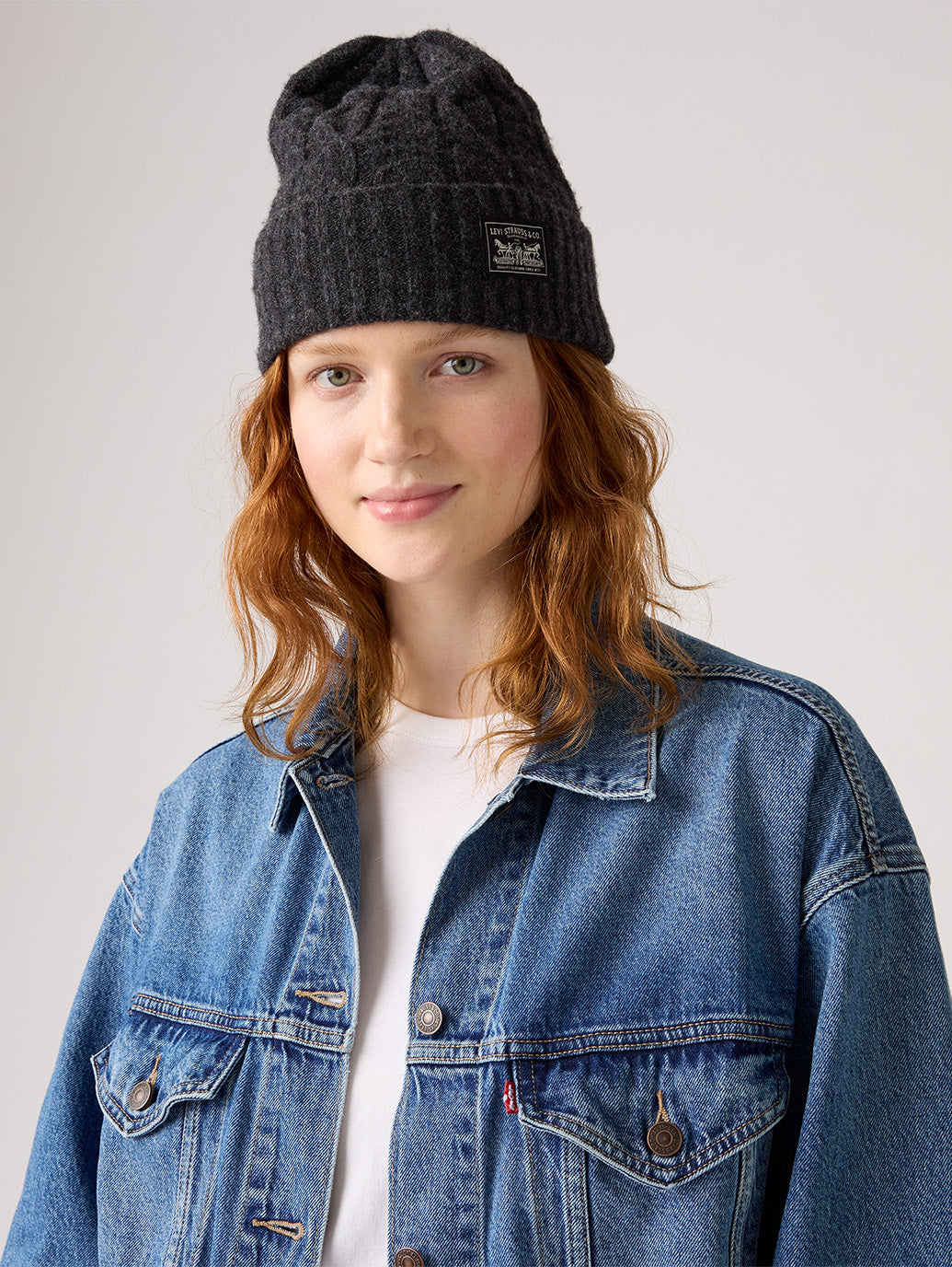 ホリデーシーズンにぴったりのケーブルニットバックパッチビーニー。暖かいケーブルニット素材を使用し、Levi's®のシグネチャーパッチで仕上げた一枚です。寒い季節のカジュアルスタイルに最適。