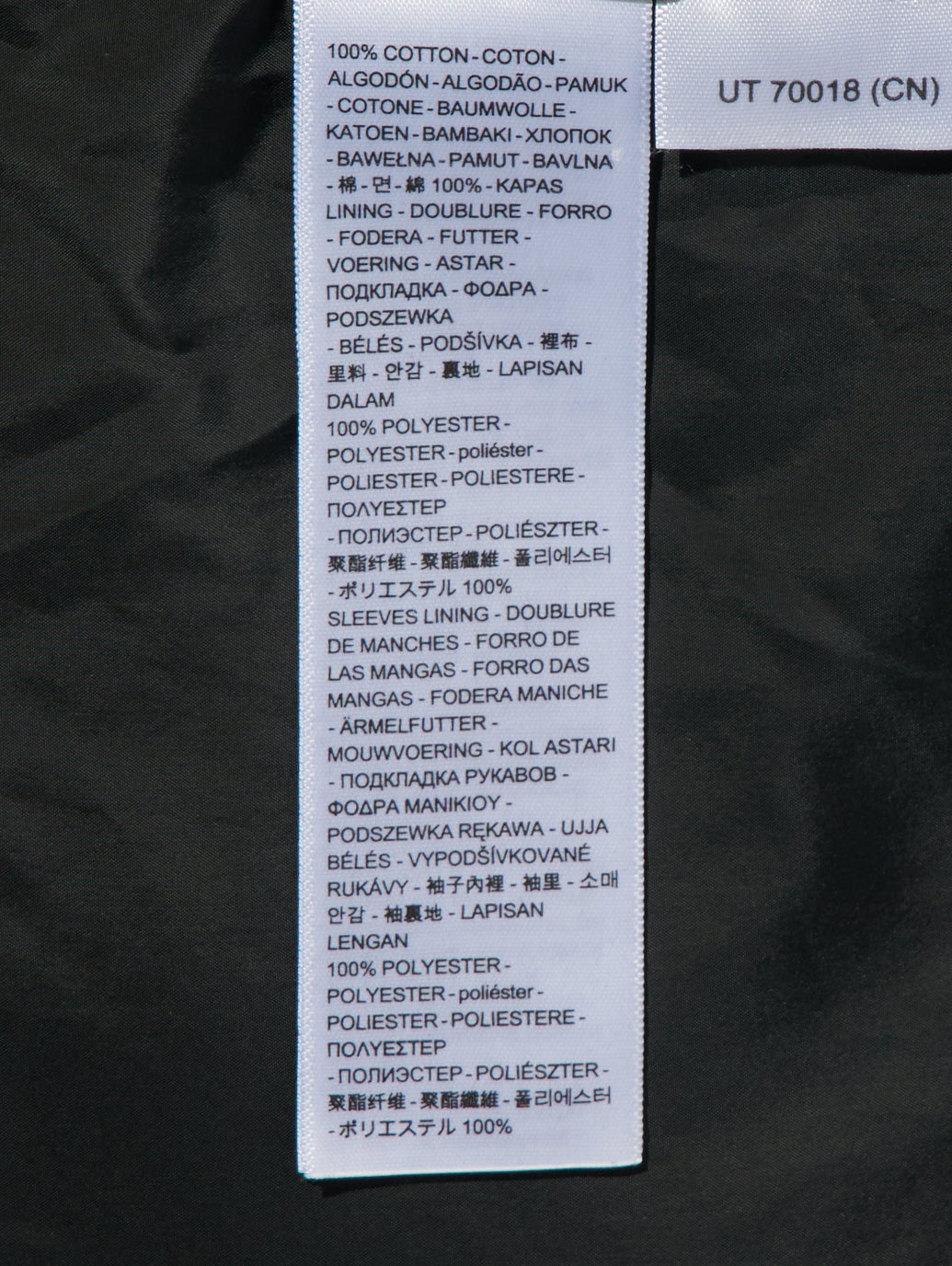 ・綿100%, 裏地:ポリエステル100%, 袖裏地ポリエステル100%