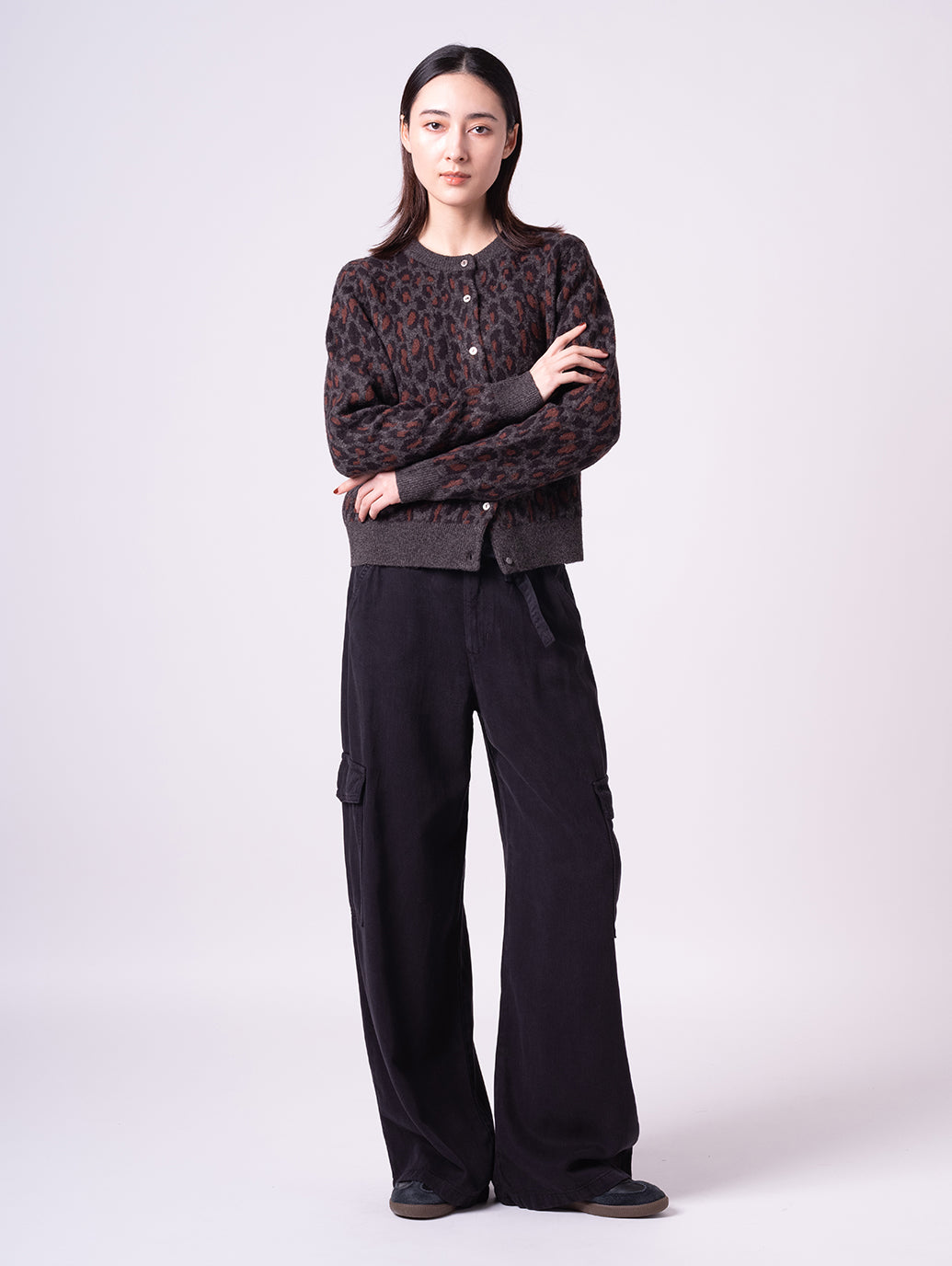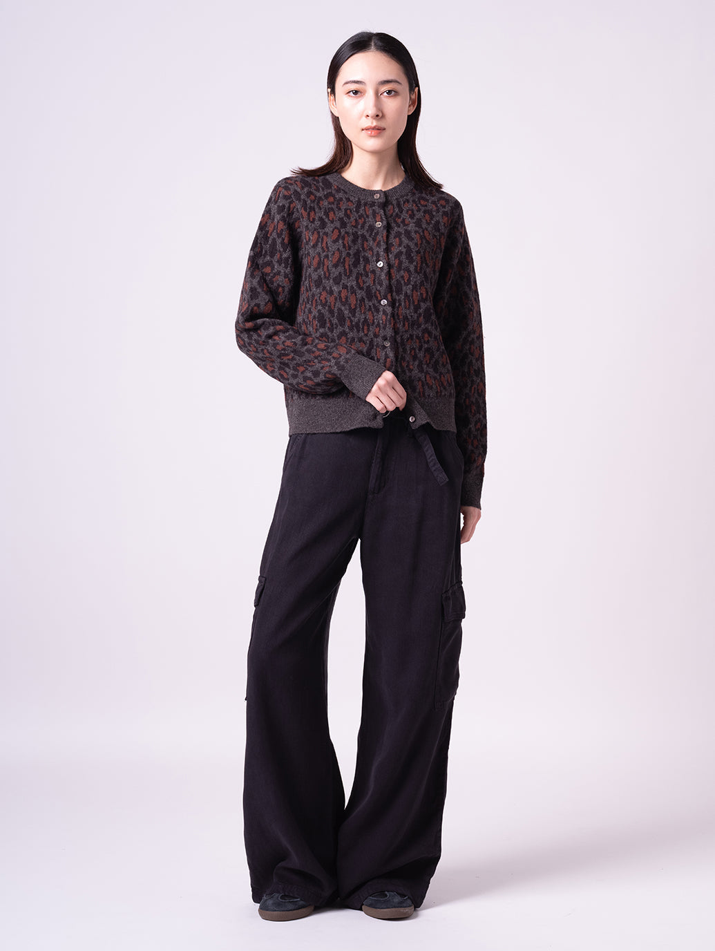 快適さとスタイルの完璧なバランスを実現。 Tara Woolyカーディガンは、トレンド感のあるヒョウ柄が魅力のニットカーディガンです。 フロントボタン仕様で着脱しやすく、ゆったりとしたスタンダードフィットがリラックスした印象を演出。 カジュアルにもきれいめにも合わせやすい、秋冬のコーディネートに欠かせない一着です。