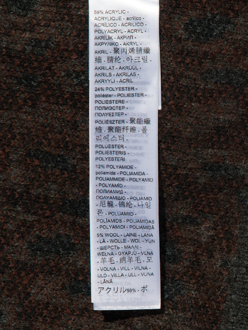 ・アクリル59%, ポリエステル24%, ナイロン12%, ウール5%