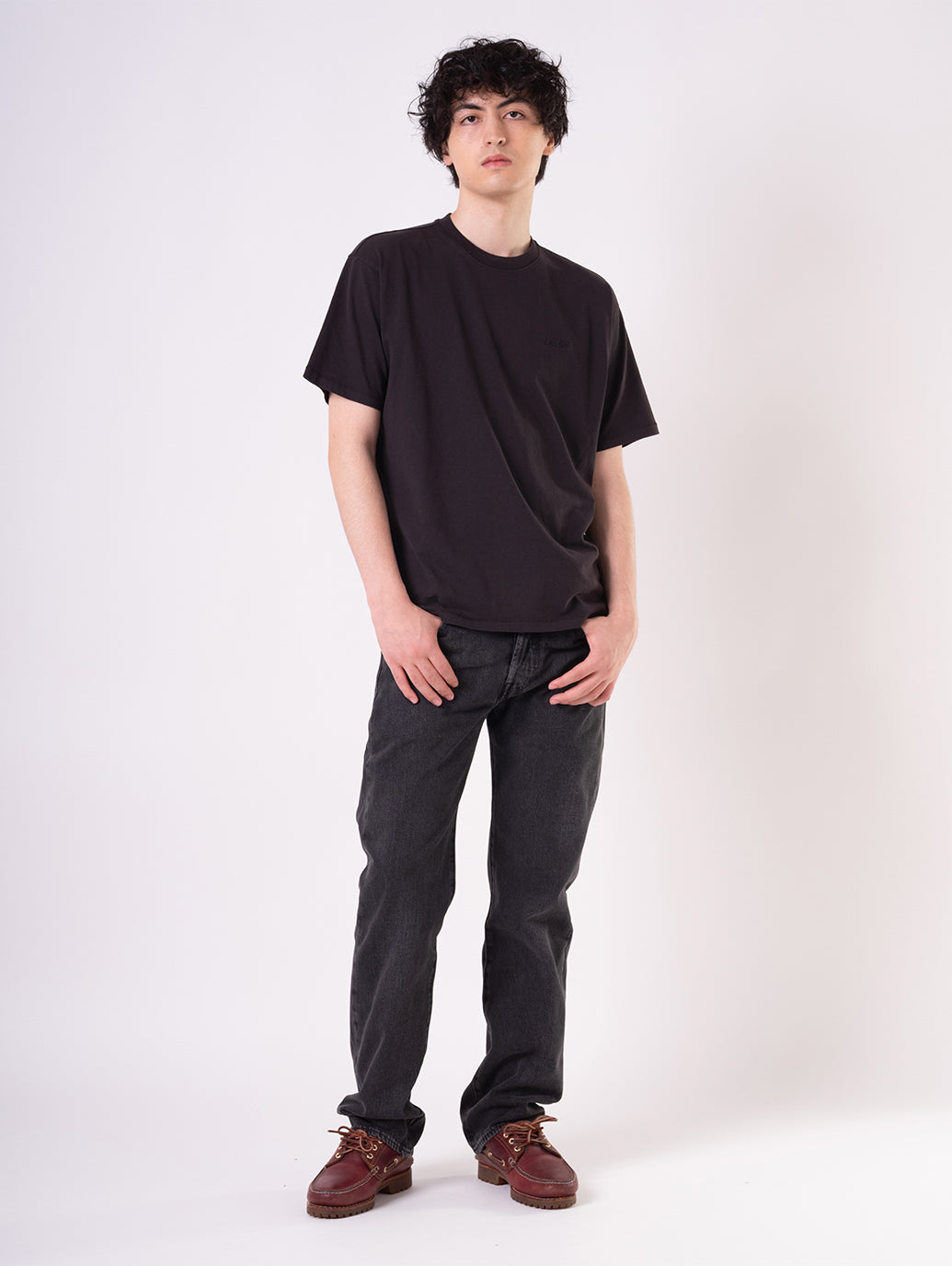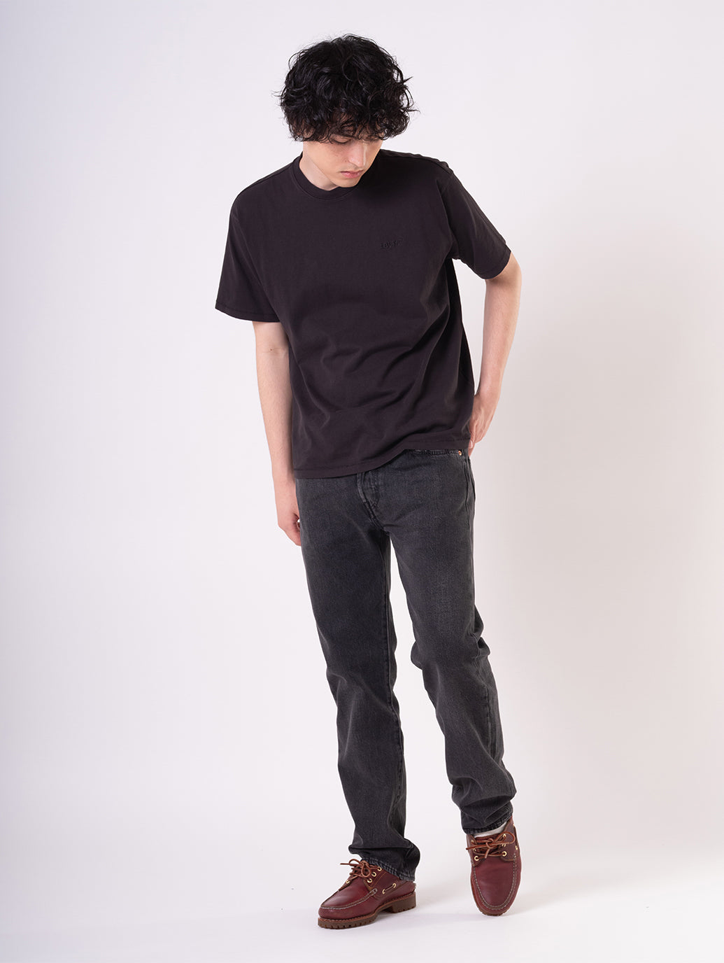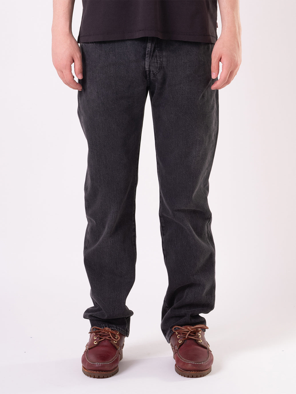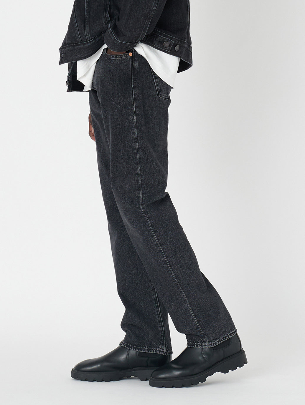 シグネチャーのストレートシルエットでカスタマイズや自己表現にぴったり。股上は程よい深さで裾に向かってすっきりとしたストレートシルエットです。少しグレー調に色落ち加工を施したブラックカラーの綿100%生地なので、長年穿き込むことで経年変化を楽しむ事が出来る一本です。