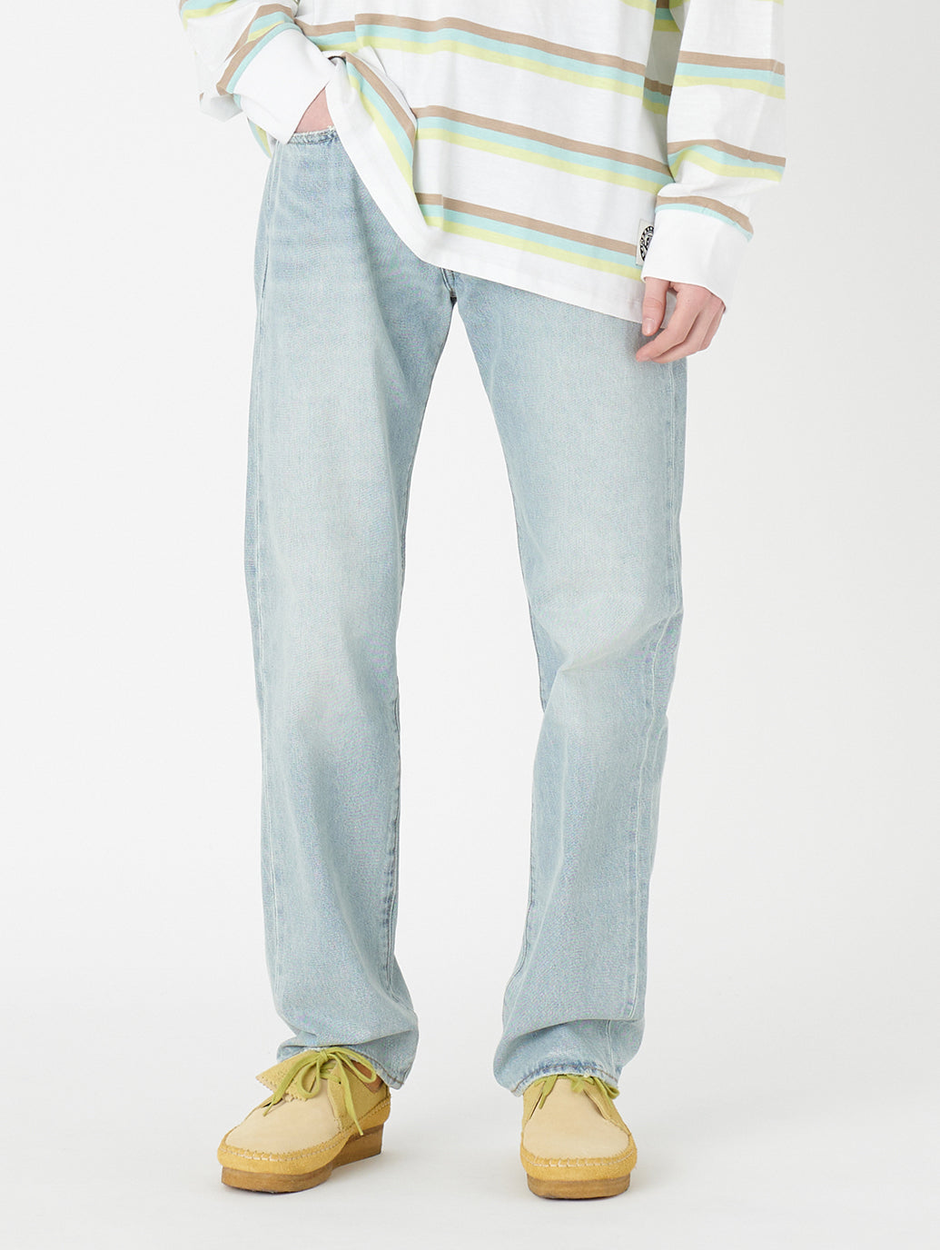 1890年にロットナンバーとして「501」が、初めて商品に付けられて以来、たくさんの人々に愛され続け、その人らしさを表現する究極のアイテムの一つとして今も人気のジーンズです。シグネチャーのストレートシルエットでカスタマイズや自己表現にぴったり。股上は程よい深さで裾に向かってすっきりとしたストレートシルエットです。セルビッジ仕様に加え、リアルに何十年も年穿き込んだかのような色落ちをしたライトカラー。そしてヘンプを配合しているので肌ざわりも軽やかなので快適にも穿ける一本です。
