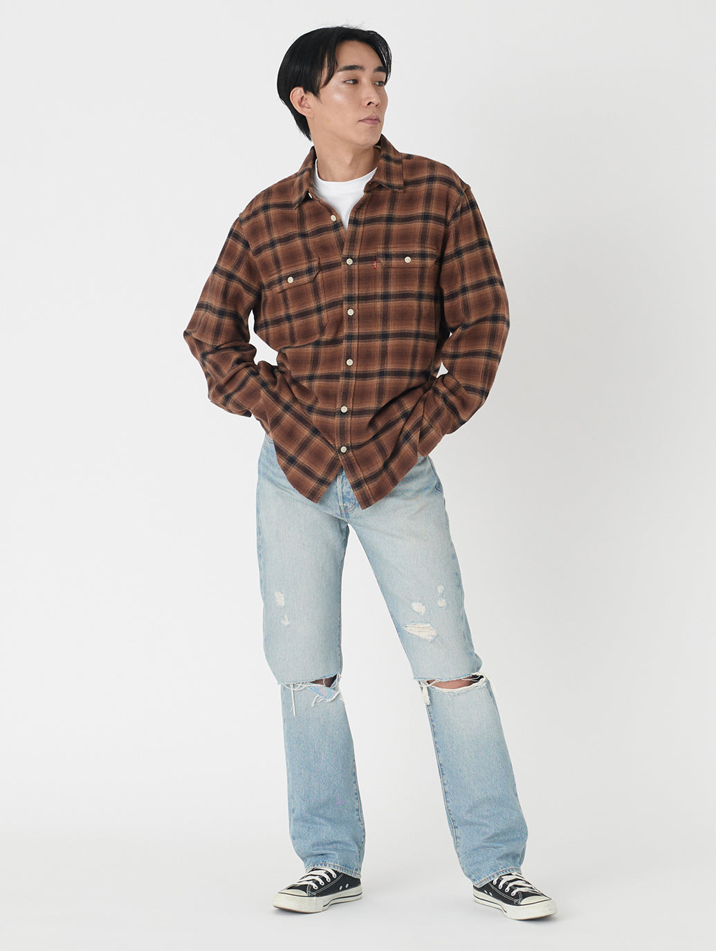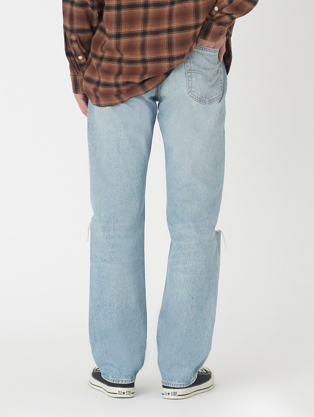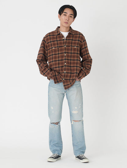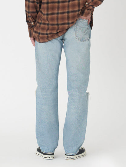 リーバイス®のベーシックシルエットの基本。1890年にロットナンバーとして「501」が、初めて商品に付けられて以来、たくさんの人々に愛され続け、その人らしさを表現する究極のアイテムの一つとして今も人気のジーンズです。シグネチャーのストレートフィットでカスタマイズや自己表現にぴったり。股上は程よい深さで裾に向かってすっきりとしたストレート。ヴィンテージ /古着で必ず目にする501®。ダメージジーンズの雰囲気に合わせて、トップスはリラックスフィット。501®は少し大きめのサイズを選ぶのがお勧めです。