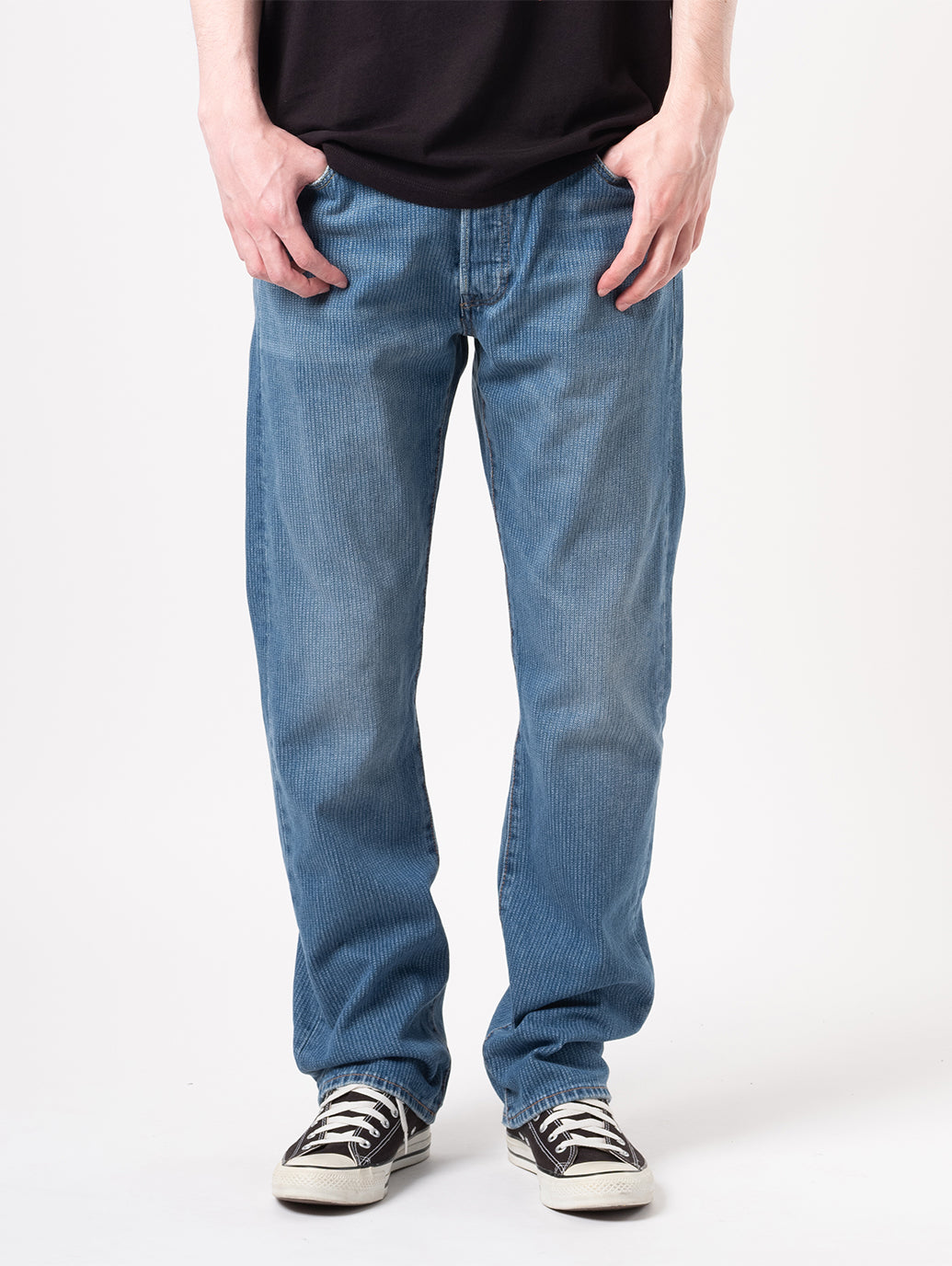 リーバイスのベーシックシルエットの基本。1890年にロットナンバーとして「501」が、初めて商品に付けられて以来、たくさんの人々に愛され続け、その人らしさを表現する究極のアイテムの一つとして今も人気のジーンズです。シグネチャーのストレートフィットでカスタマイズや自己表現にぴったり。股上は程よい深さで裾に向かってすっきりとしたストレート。ヴィンテージ /古着で必ず目にする501。 ワーク &ミリタリー テイストにも大活躍。軍物 などとも相性が良い一本です。アメリカ/ フランス/ ドイツ/ イタリア/ の 80s 90sスタイルにもぴったり。 ゆるだぼ やビッグシルエット/ オーバーサイズ で着用したい場合は少し大きめのサイズがお勧めです。コットン100%のボタンフライが特徴。