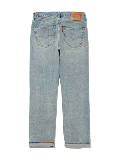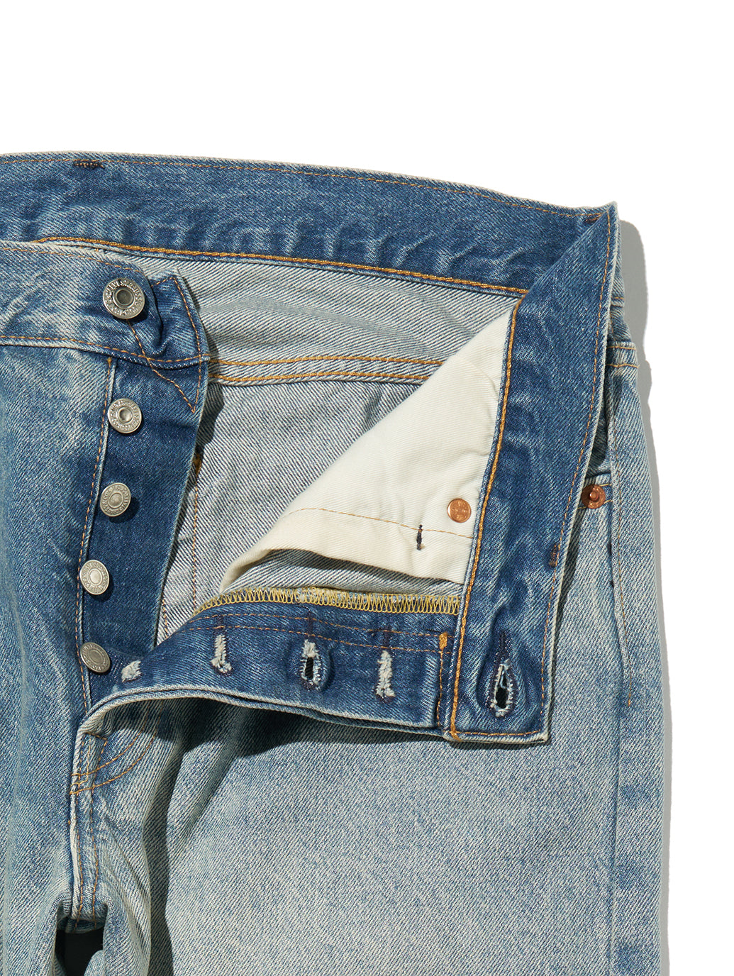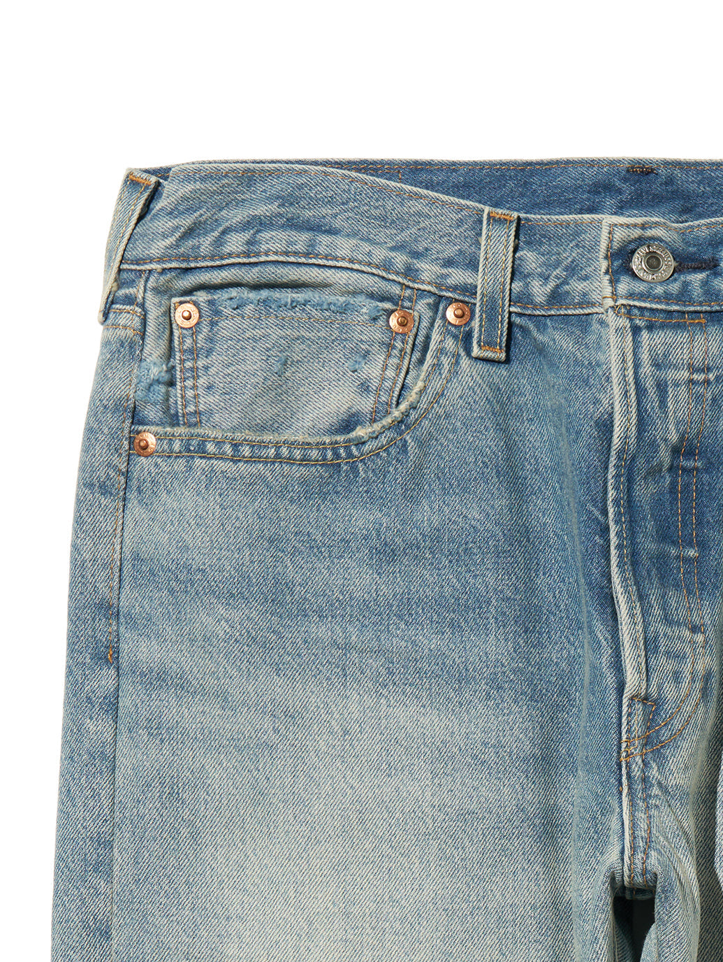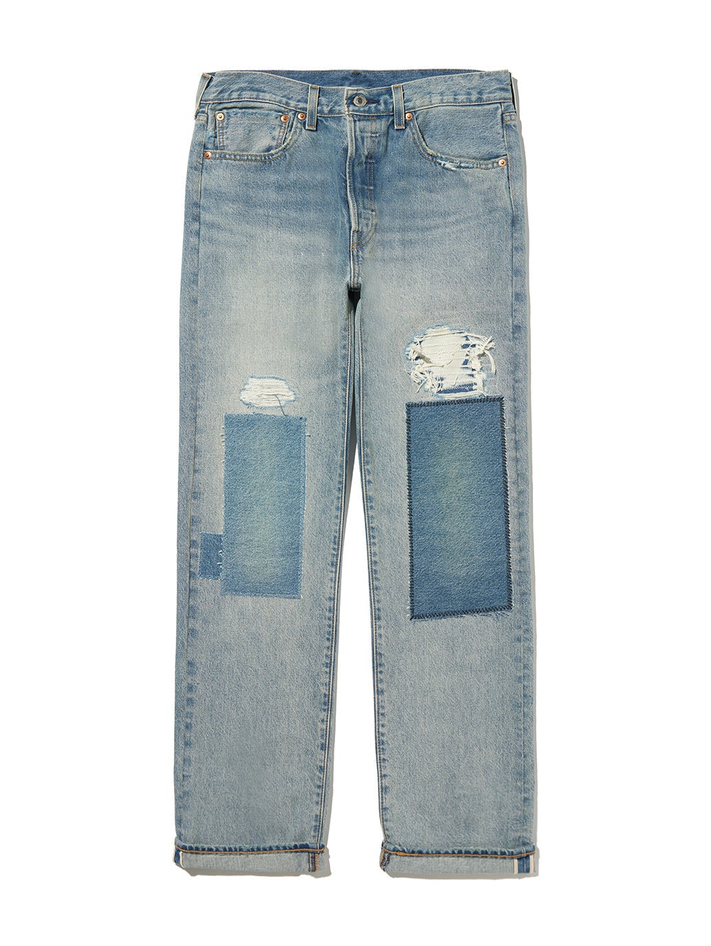 リーバイス®のベーシックシルエットの基本。 1890年にロットナンバーとして「501」が、初めて商品に付けられて以来、たくさんの人々に愛され続け、その人らしさを表現する究極のアイテムの一つとして今も人気のジーンズです。シグネチャーのストレートシルエットでカスタマイズや自己表現にぴったり。股上は程よい深さで裾に向かってすっきりとしたストレートシルエットです。ブラックユーズドカラーの綿100%の生地に加えて、耐久性に優れ、プレミアム感も強いセルビッチ仕様です。ヴィンテージにようなリアルなダメージ加工、リペア加工を施した拘りの詰まった一本です。