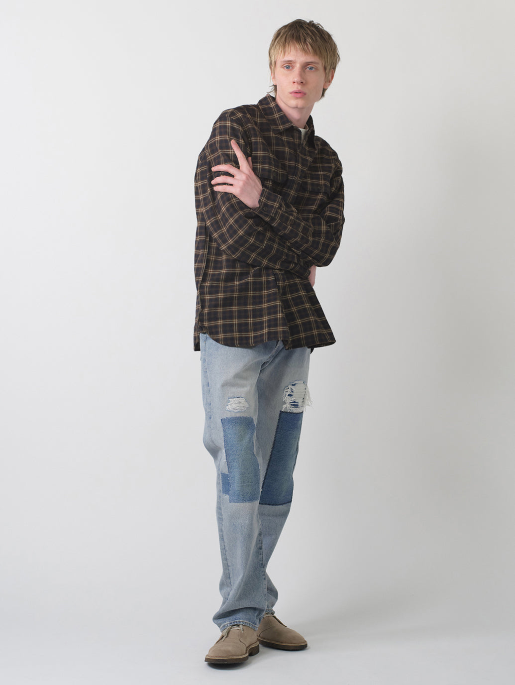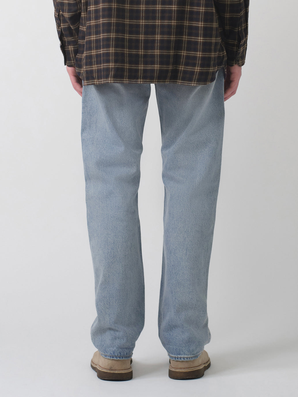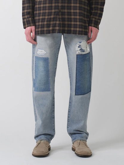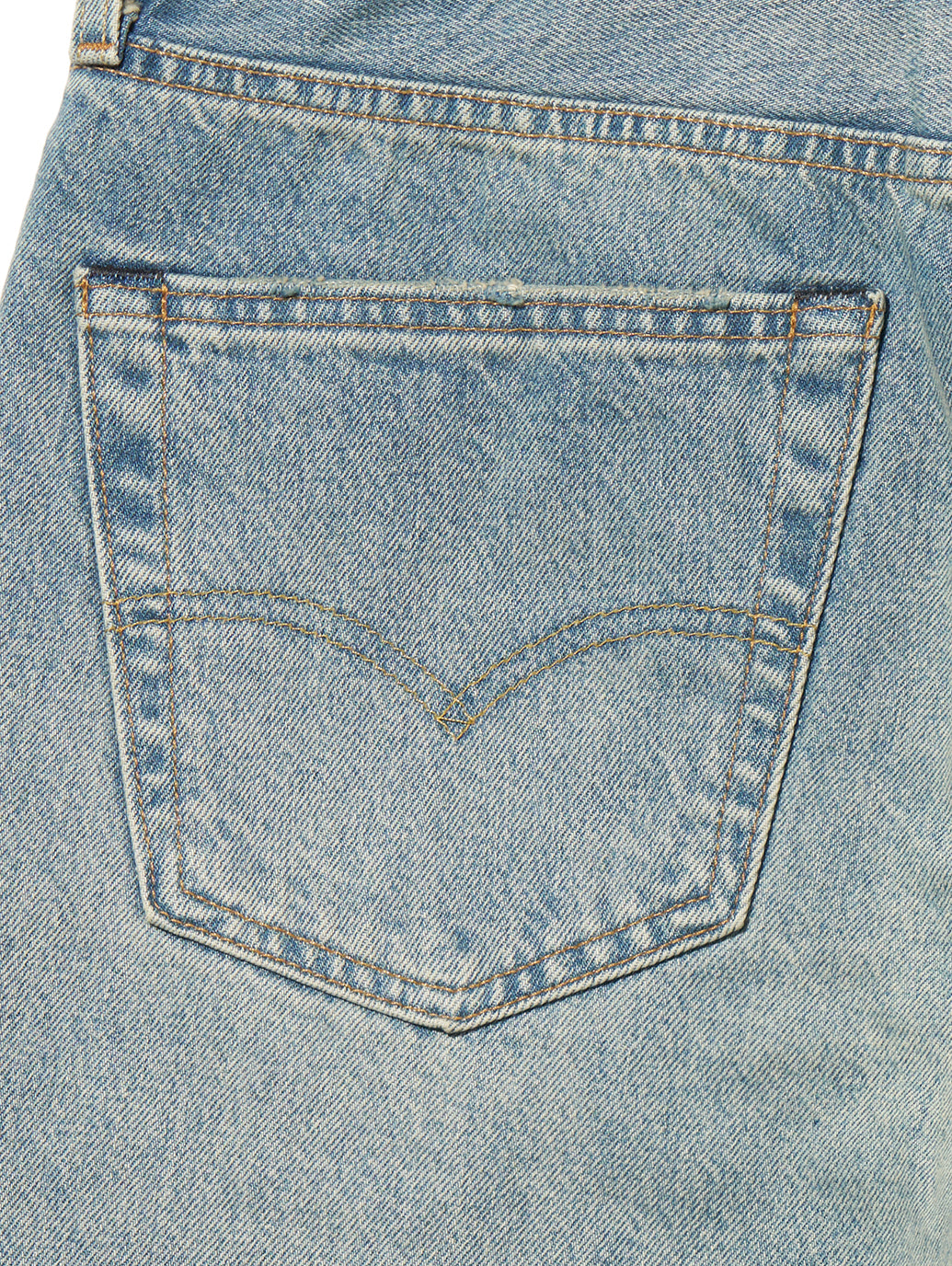 リーバイス®のベーシックシルエットの基本。 1890年にロットナンバーとして「501」が、初めて商品に付けられて以来、たくさんの人々に愛され続け、その人らしさを表現する究極のアイテムの一つとして今も人気のジーンズです。シグネチャーのストレートシルエットでカスタマイズや自己表現にぴったり。股上は程よい深さで裾に向かってすっきりとしたストレートシルエットです。ブラックユーズドカラーの綿100%の生地に加えて、耐久性に優れ、プレミアム感も強いセルビッチ仕様です。ヴィンテージにようなリアルなダメージ加工、リペア加工を施した拘りの詰まった一本です。