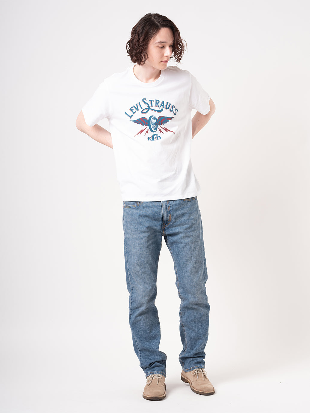 1967年に初めて作られた505™レギュラーフィットは特に人気の高いストレートカットタイプで、どんなスタイルにも合わせやすい一本に仕上げました。キレイめからカジュアルまで幅広いスタイリングが可能。シャツやジャケットと合わせたり、ビッグシルエットのスウェットやTシャツ、パーカーと合わせるのもおすすめです。綿84%ポリエステル15%ポリウレタン1%とストレッチがきいてて履きやすく、同色のデニムジャケットと合わせてセットアップ風のコーデも人気です。足元はスニーカーでカジュアルに仕上げるのはもちろん、ローファーやブーツのような革靴でも決まります。気づいたらいつも着ていて、ずっと活躍できること間違いなしなアイテムをこの機会にぜひ手にとってみては如何でしょうか。あなたの身体にジーンズの歴史を刻みましょう。