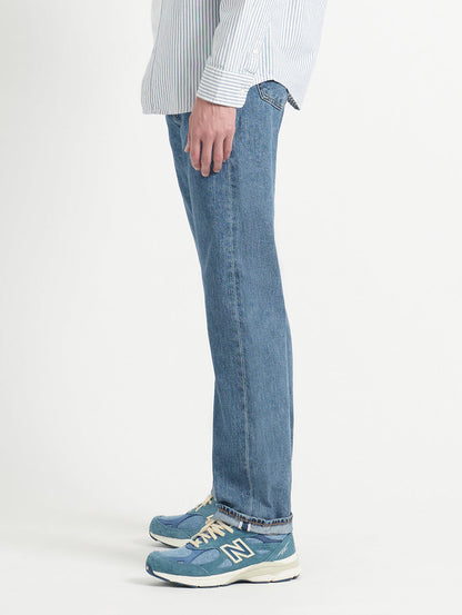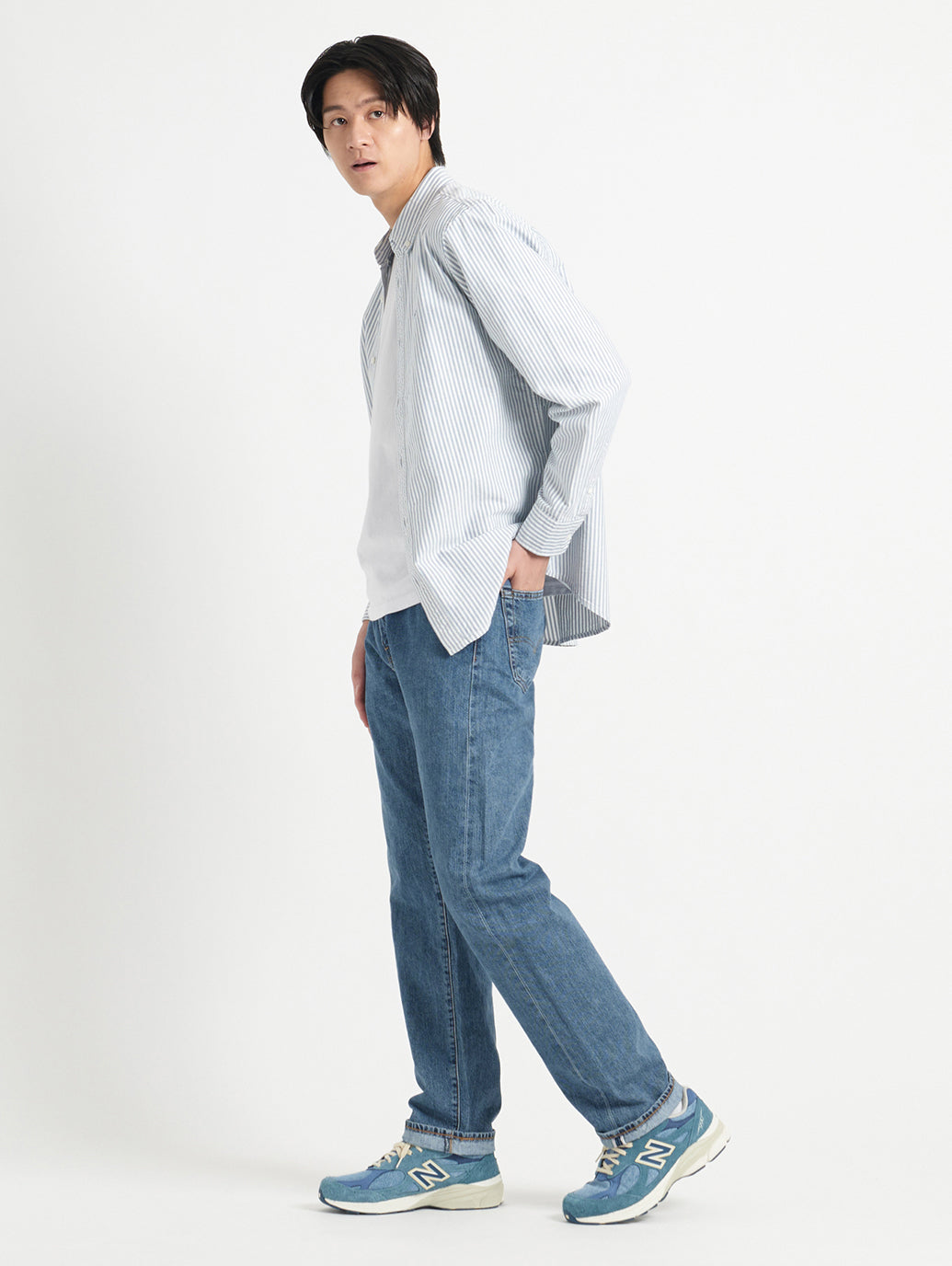 長い間、愛されているリーバイス®のベーシックシルエットの一つ。労働着をルーツに持つ501®とは異なるモダンなコンセプトとともに生まれました。ジップフライのストレートシルエット、程よい深さの股上、長年穿き込んだかのような雰囲気のあるフェードしたライトカラーの綿100%の生地に加えて、耐久性に優れ、プレミアム感も強いセルビッチ仕様です。裾を少しロールアップして穿いて頂きたい一本です。