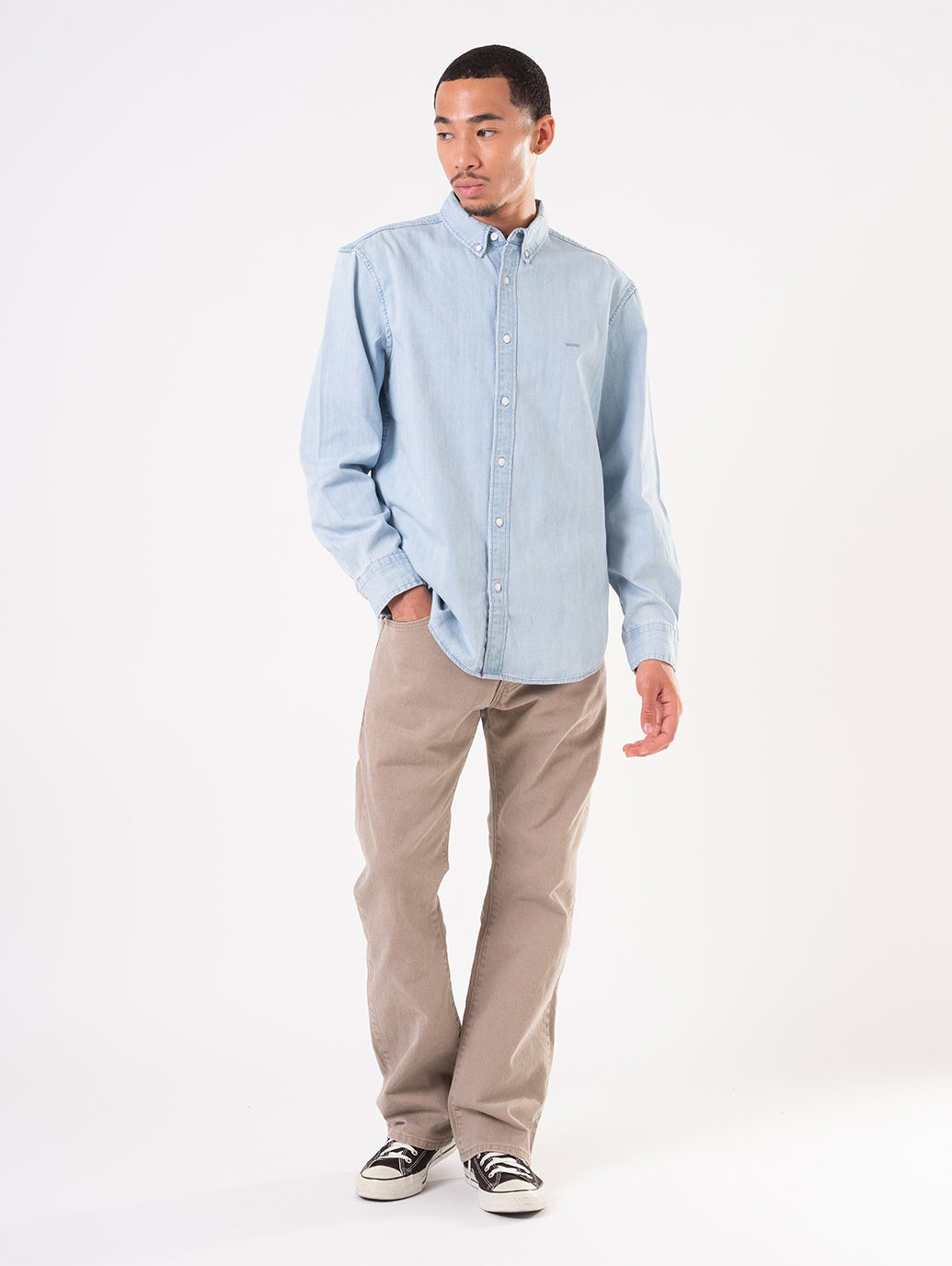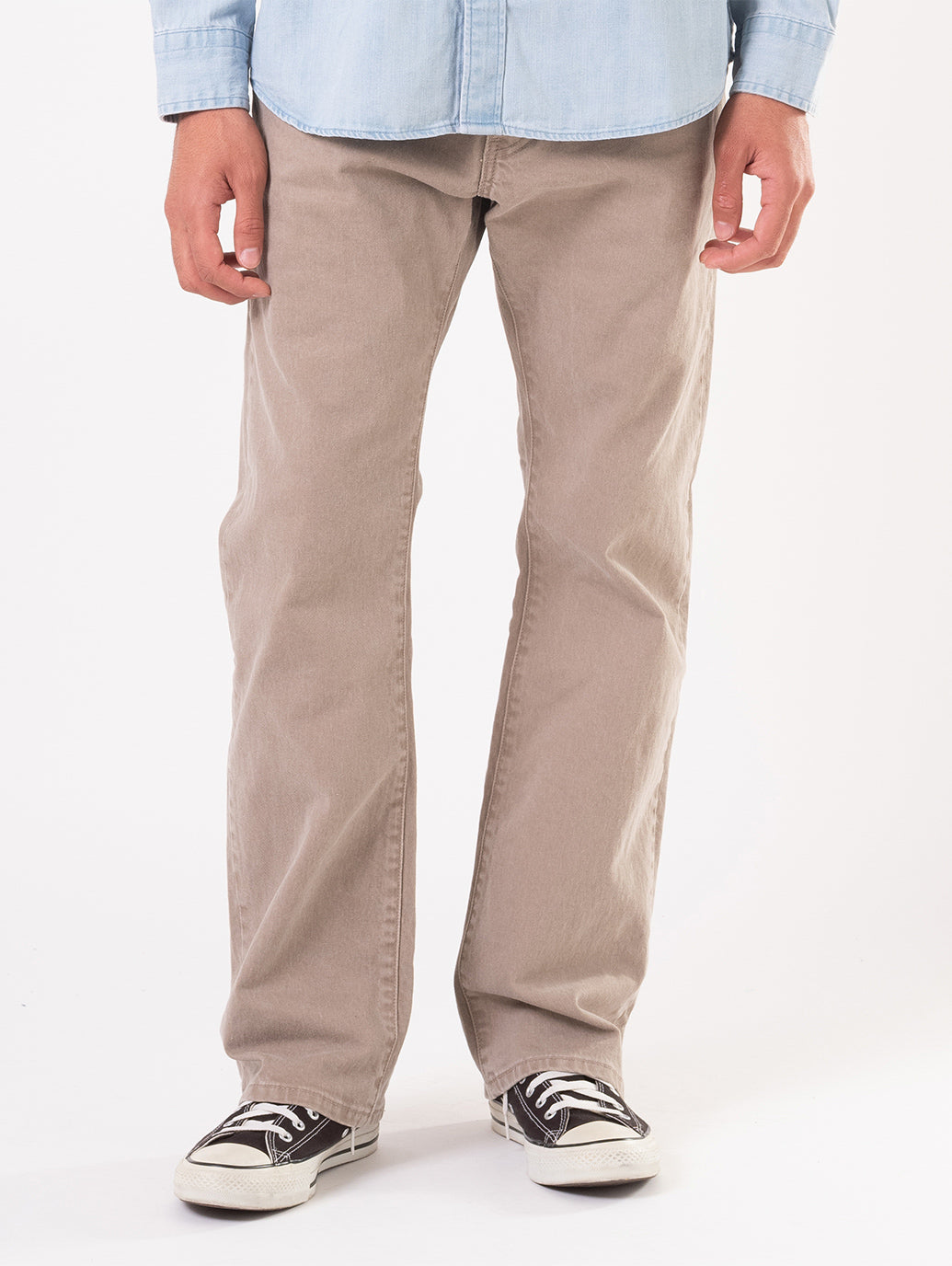 リーバイス®のベーシックの一つであり、近年の古着市場でも人気を博しているフィット。程よく深い股上、裾に向かって緩やかに広がるブーツカットシルエットで、スニーカーやブーツなど幅広い足元に合わせやすく、心地の良いフィット感のみならず脚長効果も与えてくれます。ベージュカラーなのでチノ感覚で合わせやすく、一年を通して活躍する一本です。