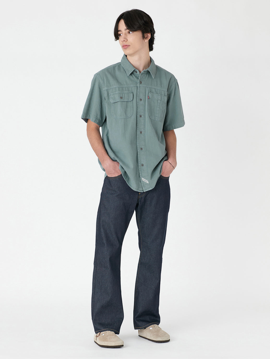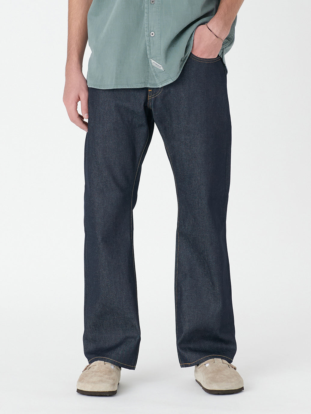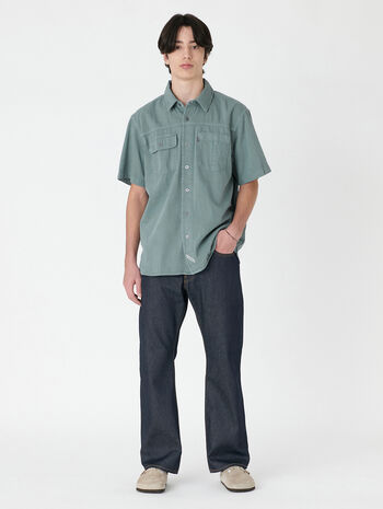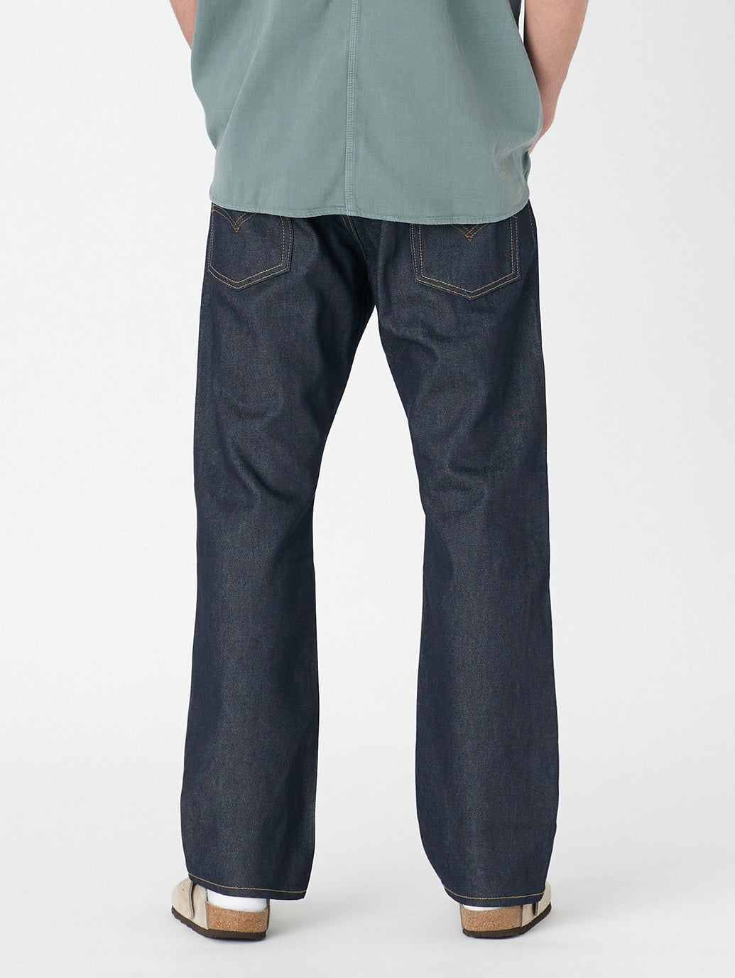 リーバイス®のベーシックの一つであり、近年の古着市場でも人気を博しているフィット。程よく深い股上、裾に向かって緩やかに広がるブーツカットシルエットで、スニーカーやブーツなど幅広い靴に合わせやすく、心地の良いフィット感のみならず脚長効果も与えてくれます。リジッドアイテムなので汎用性は勿論、色落ちの経年変化も楽しめる一本です。
