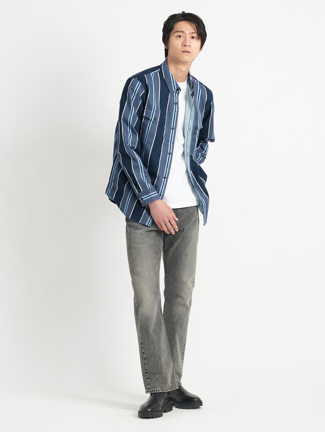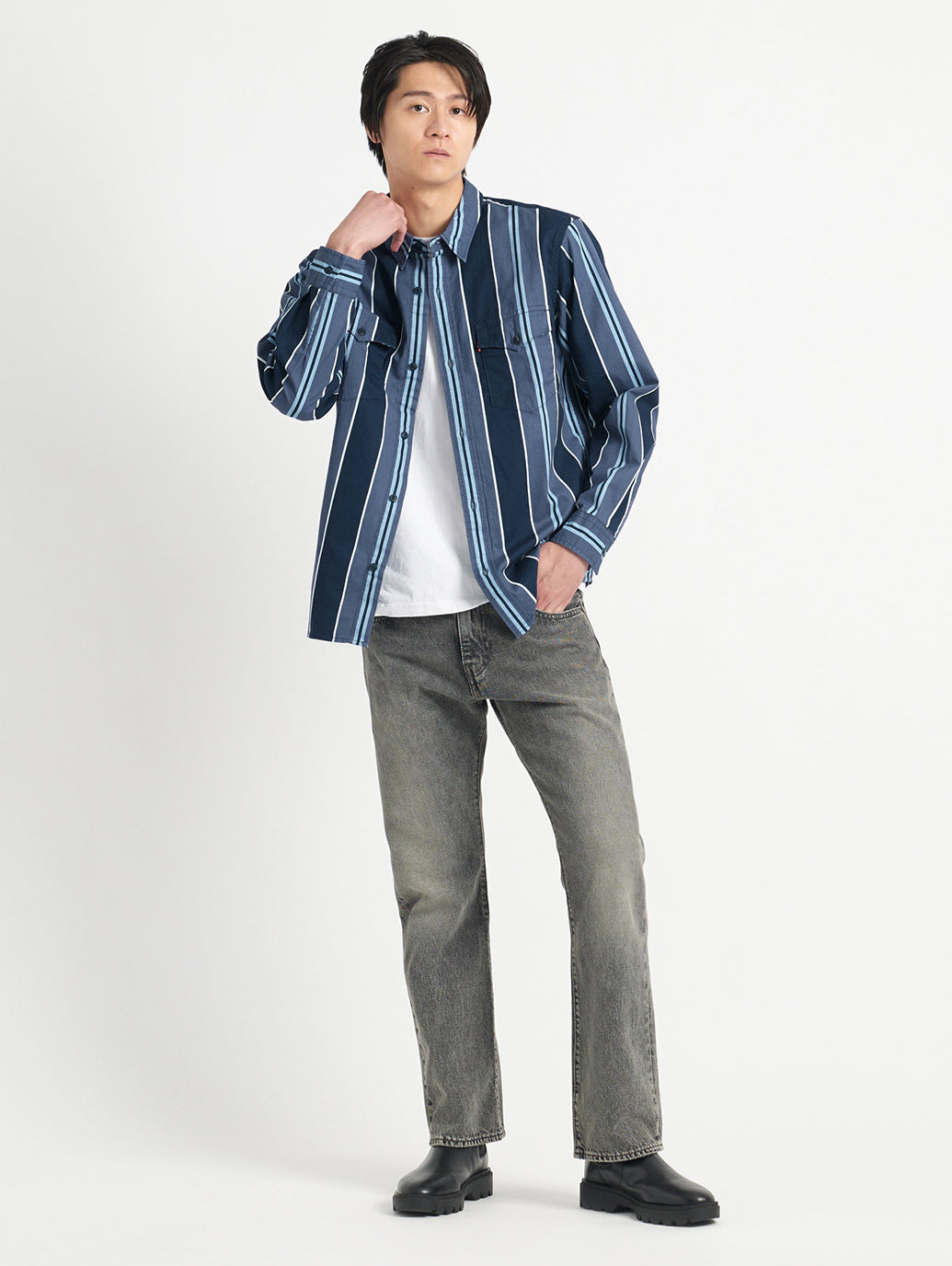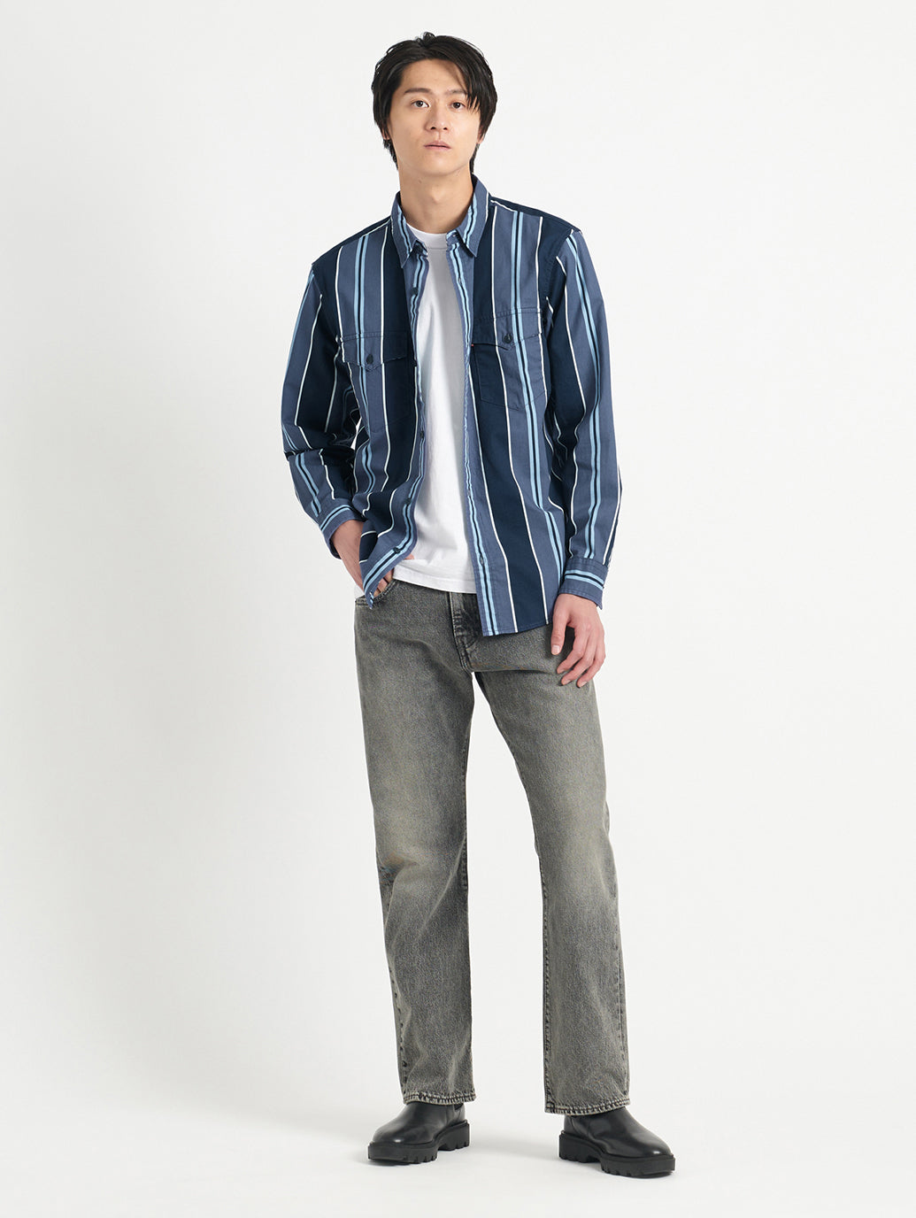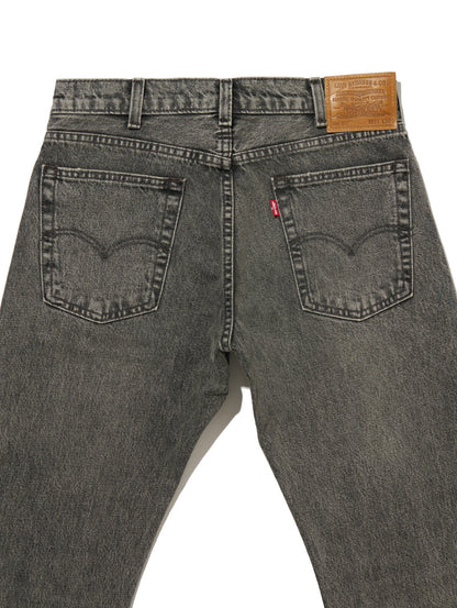 リーバイス®のベーシックの一つであり、近年の古着市場でも人気を博しているフィット。程よく深い股上、裾に向かって緩やかに広がるブーツカットシルエットで、スニーカーやブーツなど幅広い靴に合わせやすく、心地の良いフィット感のみならず脚長効果も与えてくれます。ブラックのユーズドカラーでグレー調の良い塩梅のフェード感がありながらも、カジュアルなワントーンコーデにも、ジャケットやシャツ等を併せてフォーマルな着こなしにもお勧めの一本です。