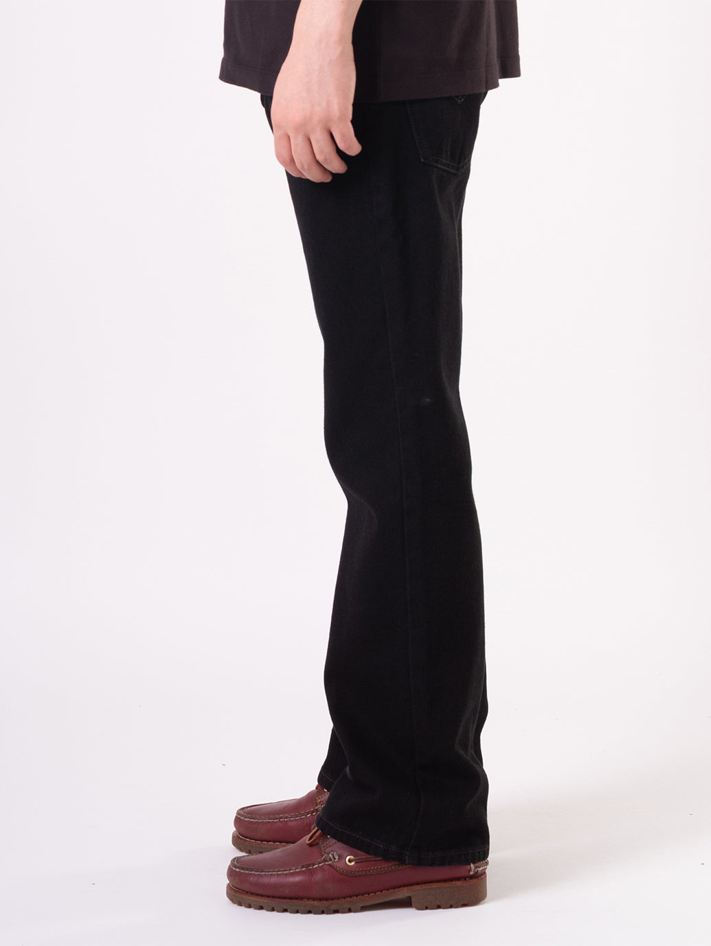 リーバイス®のベーシックシルエットの一つ。股上は程よい深さ。太ももから膝にかけてしぼられていて裾に向かって広がるブーツとの相性抜群のブーツカット。ヴィンテージ/ 古着で最近多く目にするトレンドのシルエットです。 裾幅が広いためボリュームのあるワークやミリタリーブーツに裾部分も覆うように穿くことが出来ます。 どんな履物に合わせても脚長効果を発揮し、綺麗めな印象を与えてくれます。また、アメリカをはじめフランス/ドイツ/イタリア等のユーロの軍物も無骨な印象が強いですがブーツカットと合わせることでそれぞれの個性を調和し、バランスのとれた着こなしに仕上げてくれます。80sを象徴するプレッピースタイルや90s を象徴するストリートスタイルも”ルーズ”や”着崩す”ということがポイントでブーツカットは最適なアイテムです。幅広いスタイルで活躍するアイテムの一つです。