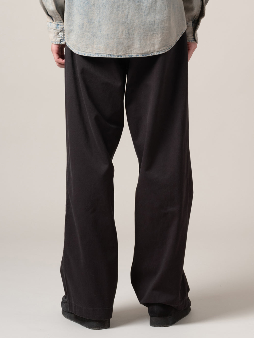 ストレートレッグのソフトなパンツで、腿にかけてきれいなレギュラーフィットスタイルに90年代風のルーズフィットを組み合わせたハイブリットなシルエットです。 model:181cm B89 W68 H83 着用サイズ:33inch
