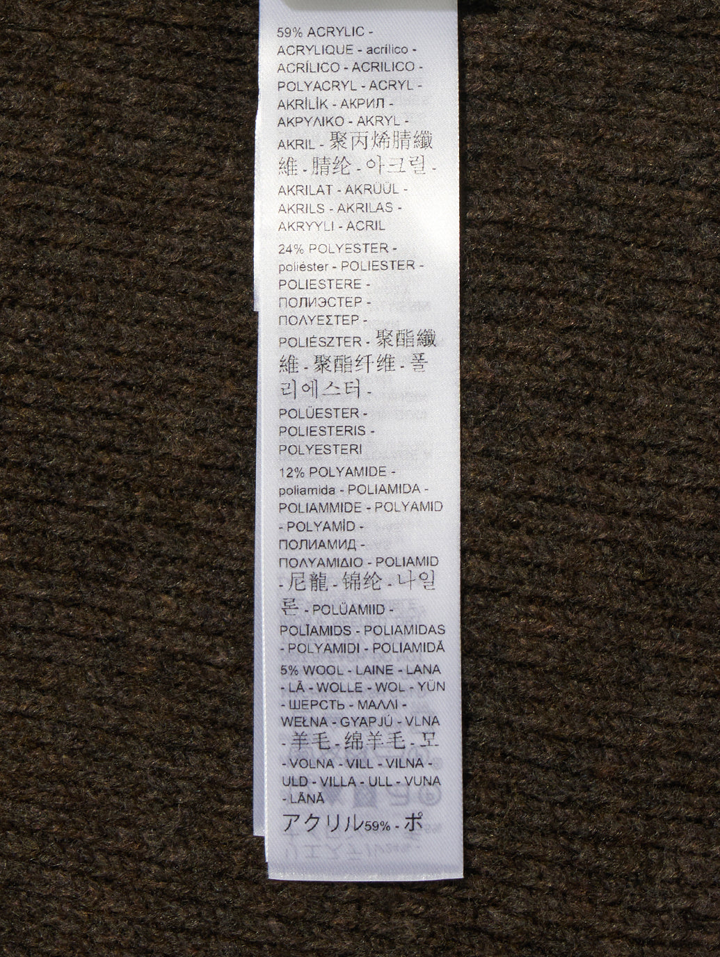 ・アクリル59%, ポリエステル24%, ナイロン12% , ウール5%